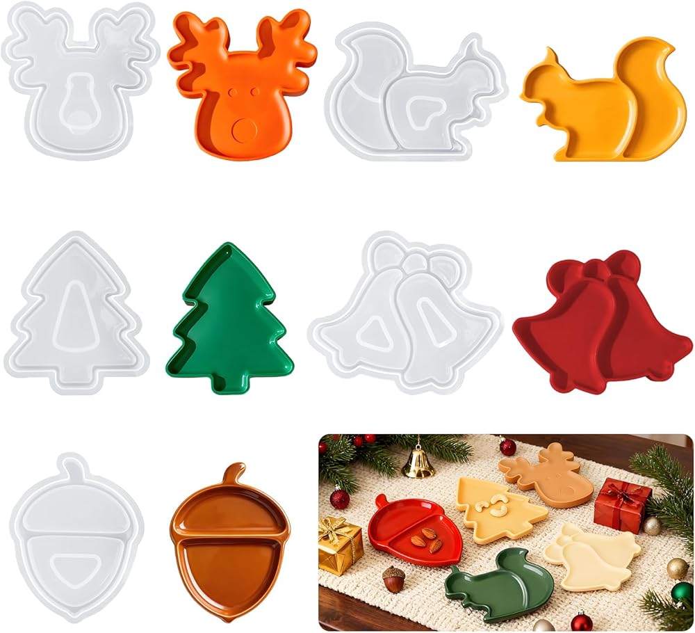 قوالب راتنج السيليكون عيد الميلاد مجموعة ، الرنة ، السنجاب ، شجرة الصنوبر ، مخروط ، أشكال الجرس طقم العفن من أجل الإيبوكسي ، صنع الجص ، عطلات متعددة الأعياد صفيحة تخزين الطبق راتنجات الراتنج