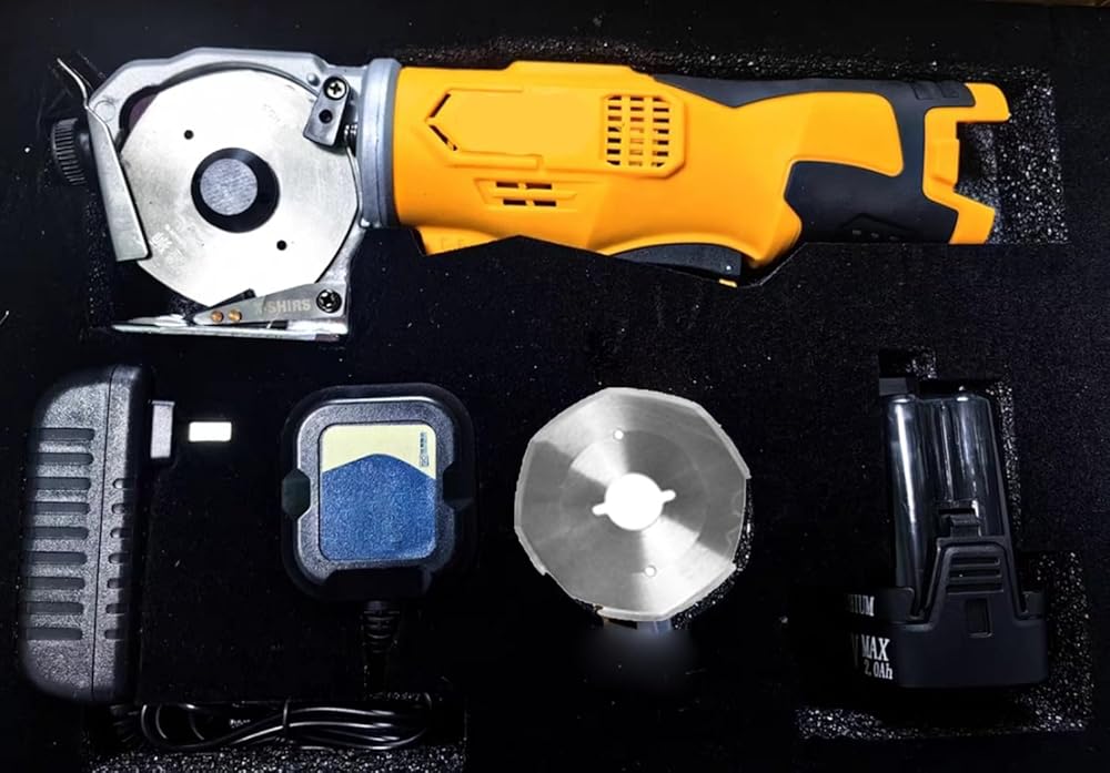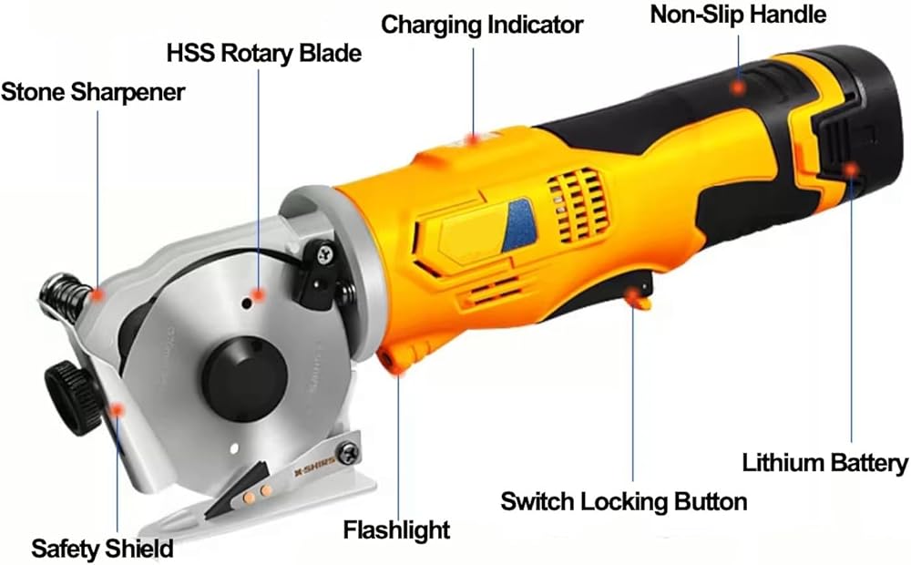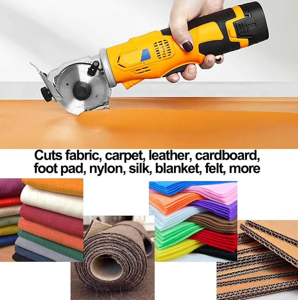 Portable Rotary Cutter for Fabric, Cordless Electric Scissors, Heavy Duty Carpet Cardboard Cutter for Leather Felt Cutting Machine, Built-in Sharpener, 1 Battery