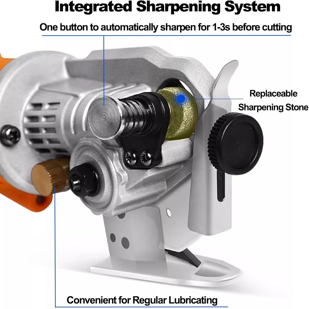 Cordless electric scissors designed with a removable stone sharpener, simply one button to sharpen the blade for 1-3 seconds, no need to remove the blade for honing with an extra sharpener