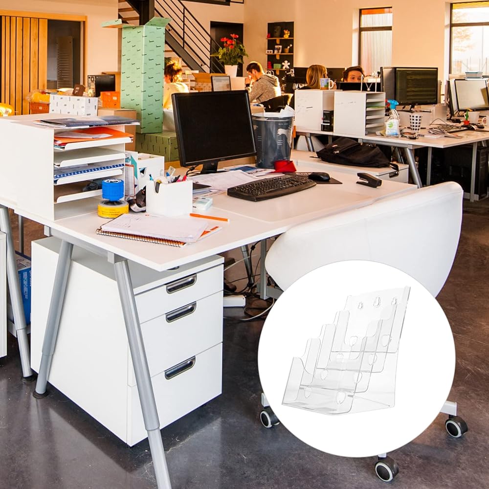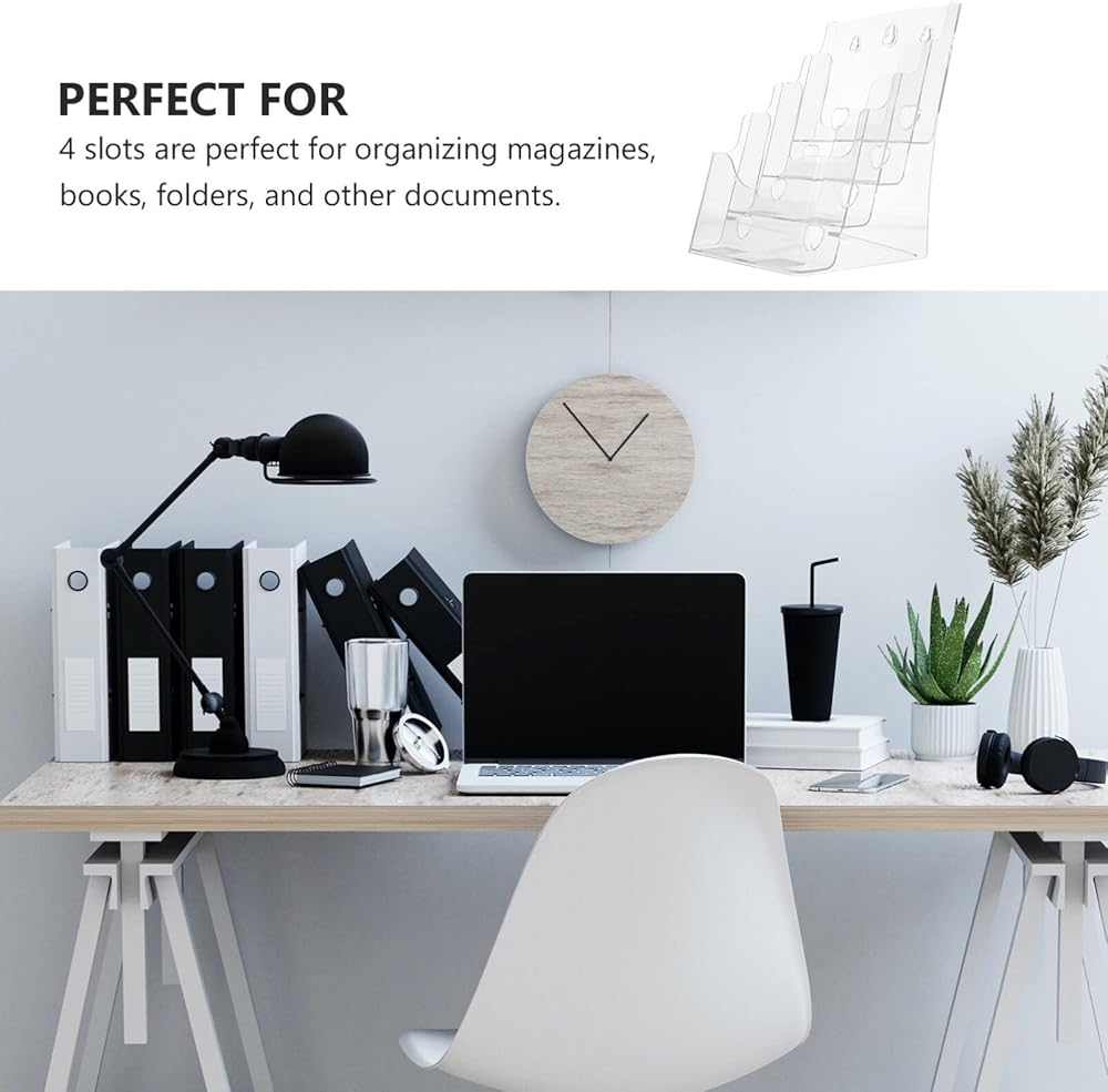 حامل كتيب حامل ملف أكريليك شفاف حامل ملف عملي من أربع طبقات لمجلة رف سطح المكتب 1 قطعة رف عرض الكتيب