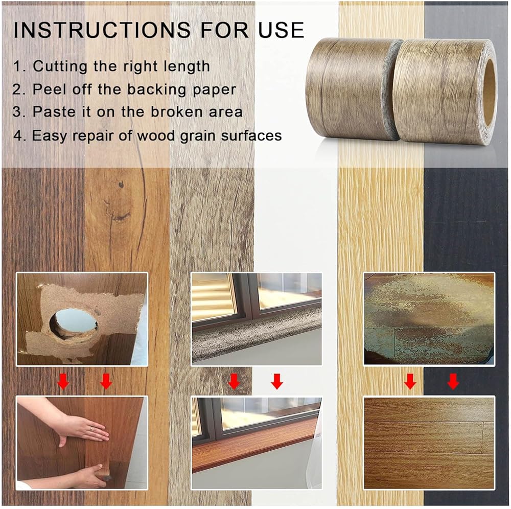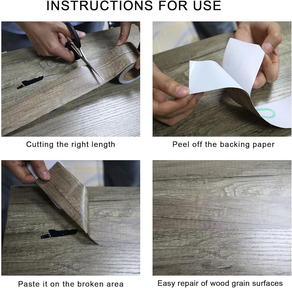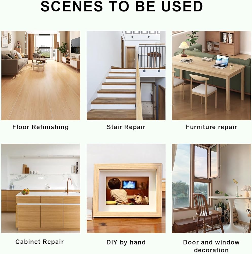 تطبيقات واسعة: شريط إصلاح الحبوب الخشبية عبارة عن مادة رقيقة تستخدم لإغلاق وتحسين المتانة وتحديث الأسطح على الجداول والكراسي والألواح والأبواب والنوافذ والأرضيات و DIY الحرفية والمزيد. يمكنه تجديد طاولاتك وخزاناتك و DIY وغيرها من الأثاث وشريط إصلاح الحبوب الخشبية سوف يترك السطح ناعمًا وأنيقًا.