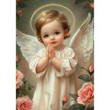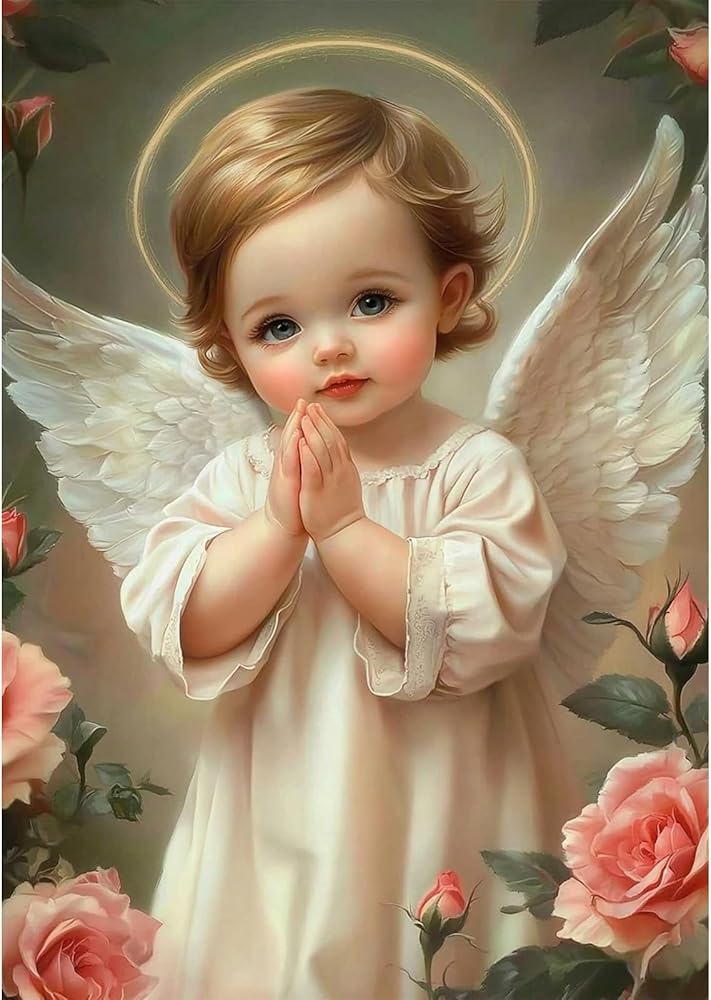 مجموعات الفن الماسي من NAIMOER Little Angel للبالغين المبتدئين، مجموعة طلاء ألماس 5D، طلاء فني كامل للجواهر DIY بواسطة Diamonds Dot، حرف رسم ماسية لديكور الحائط المنزلي 12 × 16 بوصة
