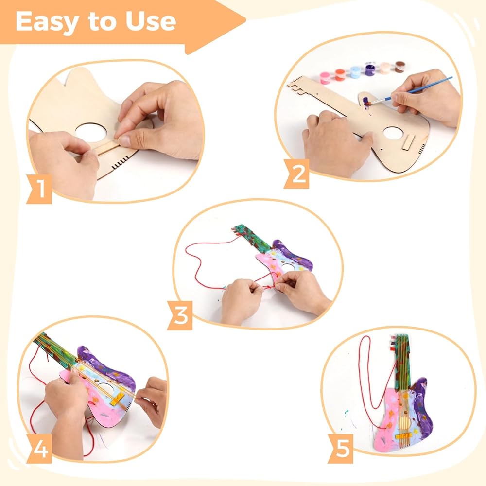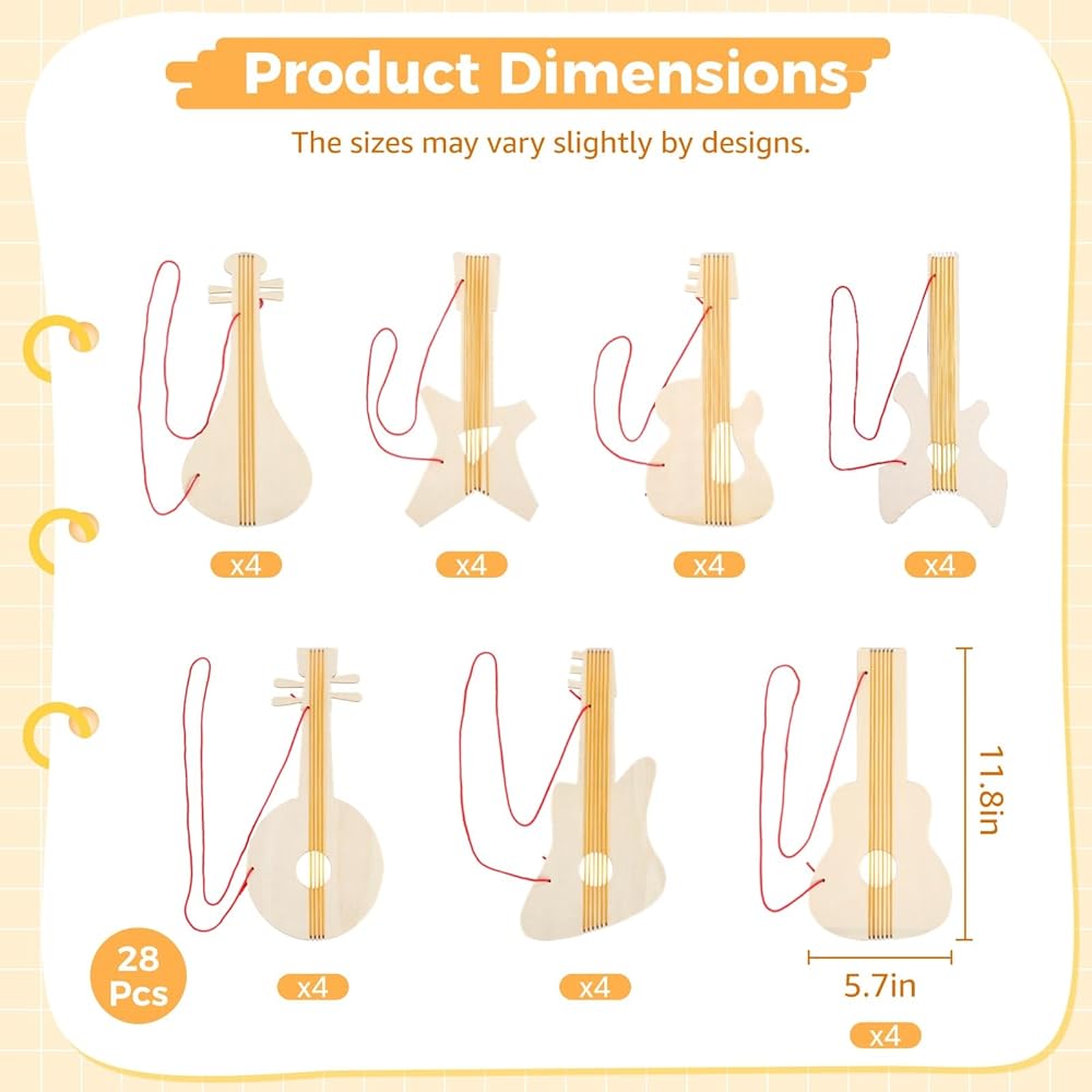 استخدام DIY متعدد الاستخدامات: مثالي للطلاء ، تزيين ، أنشطة الفصل الدراسي ، سجل القصاصات ، وحرف الحفلات ؛ يعمل أيضًا كهدية فريدة من نوعها وسيحب المستكشفون الصغار إنشاء وتخصيص القيثارات الخاصة بهم