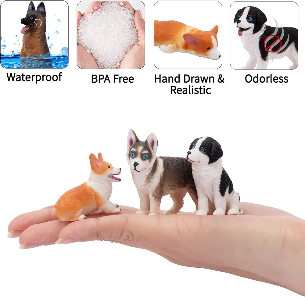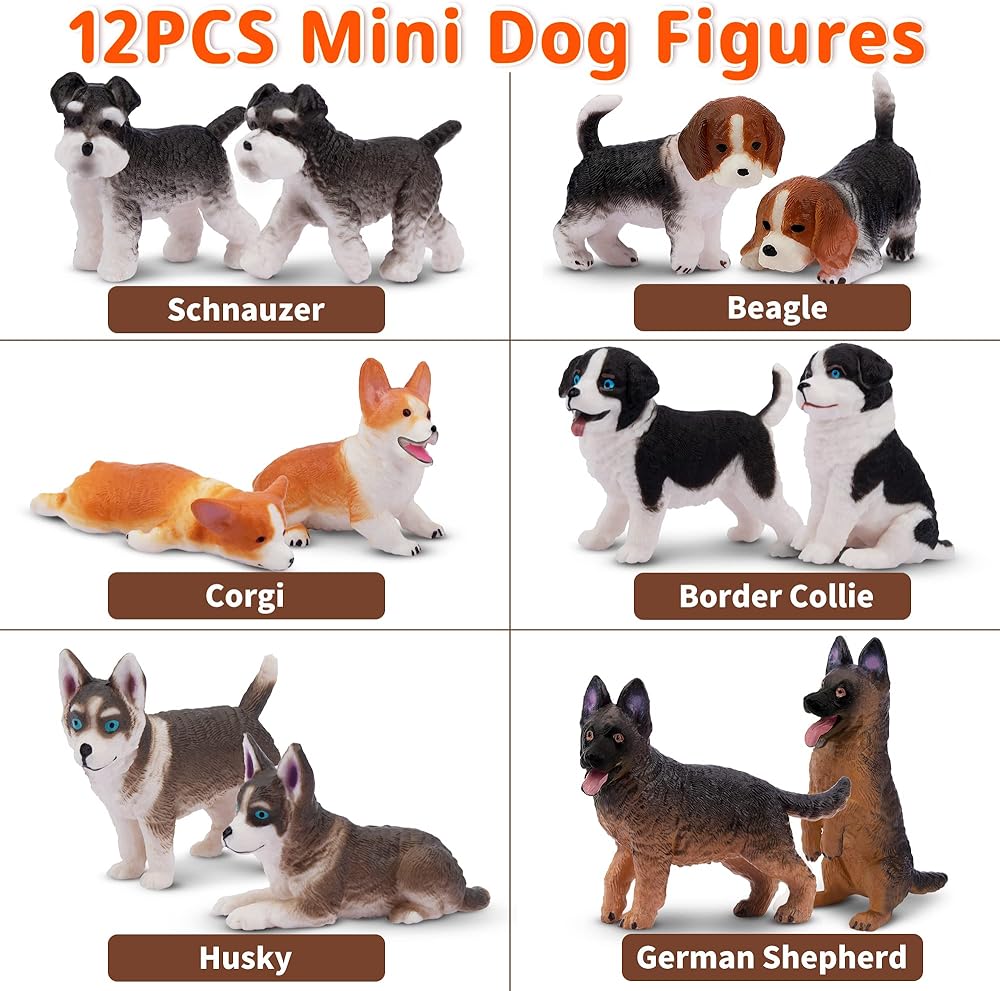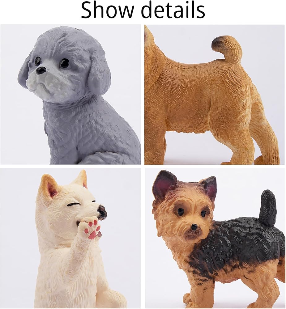 【Educational Animals Playset】 These puppy figures were excellent for crafts, imaginative play, party favors, school projects. It will support the training of children's imagination and creativity. The parent-child bond will be strengthened if parents read their children stories about dogs joyful lives.