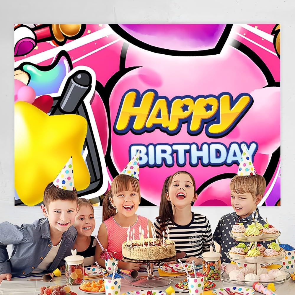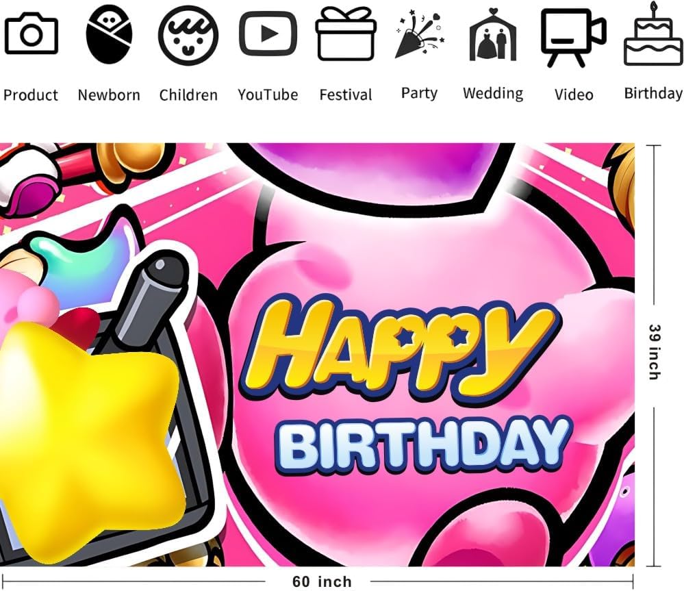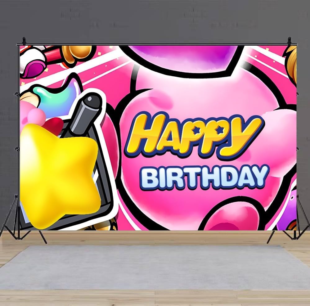 Kirbies Background Birthday Banner Backdrop for Kids Birthday Party Supplies Decorations (5x3ft)