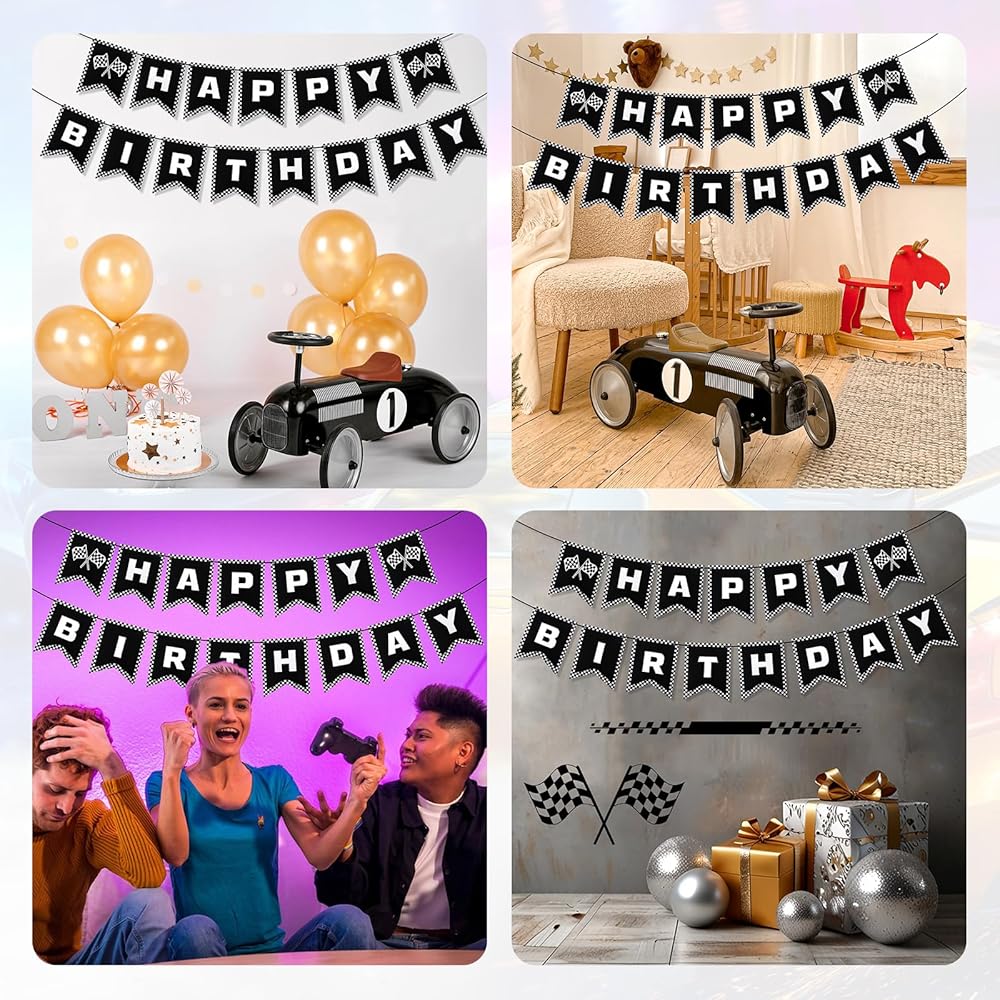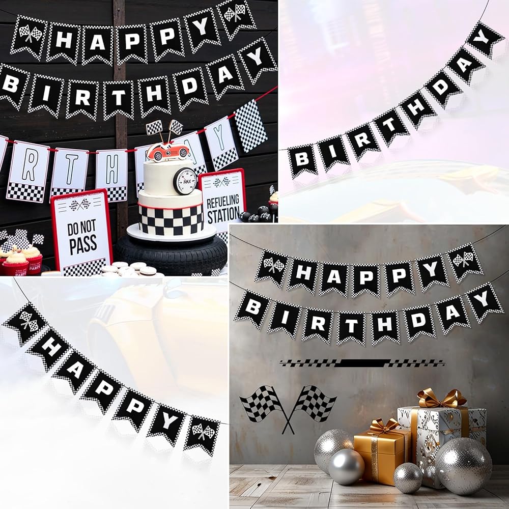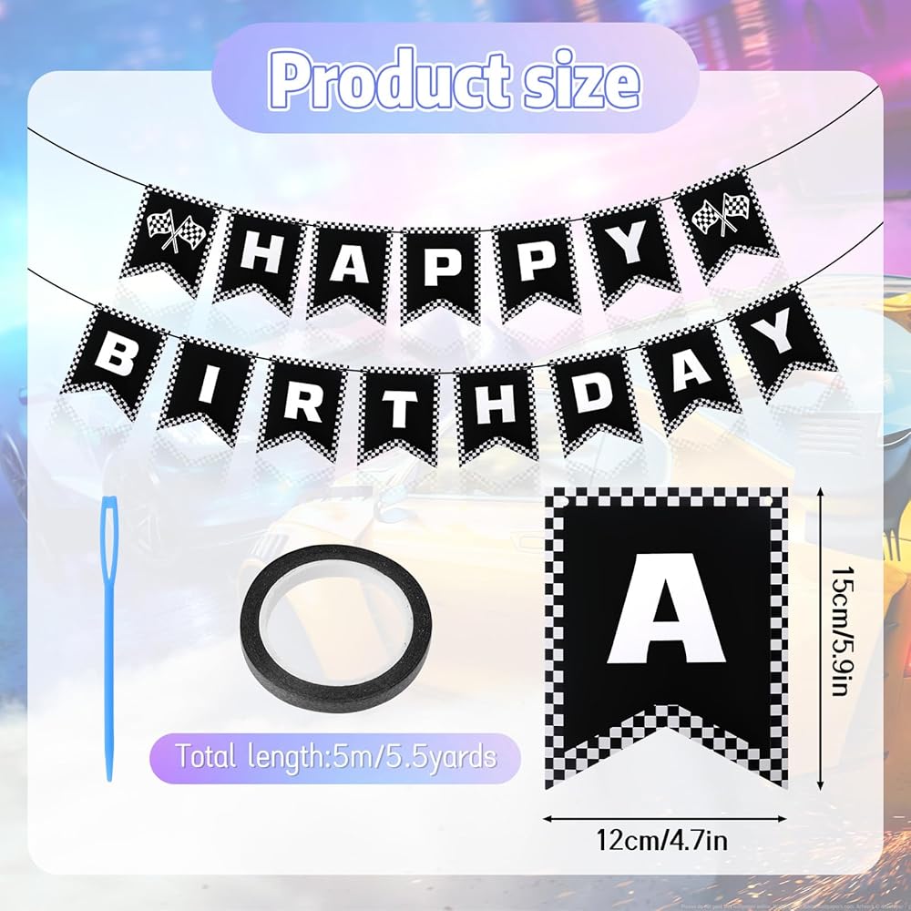 • 【High Quality Material】Racing party decoration is made of good paper. Eco-Friendly paper banner, No fading, no smell. It can be used many times. The happy birthday banner design is fashionable, the printing is clear