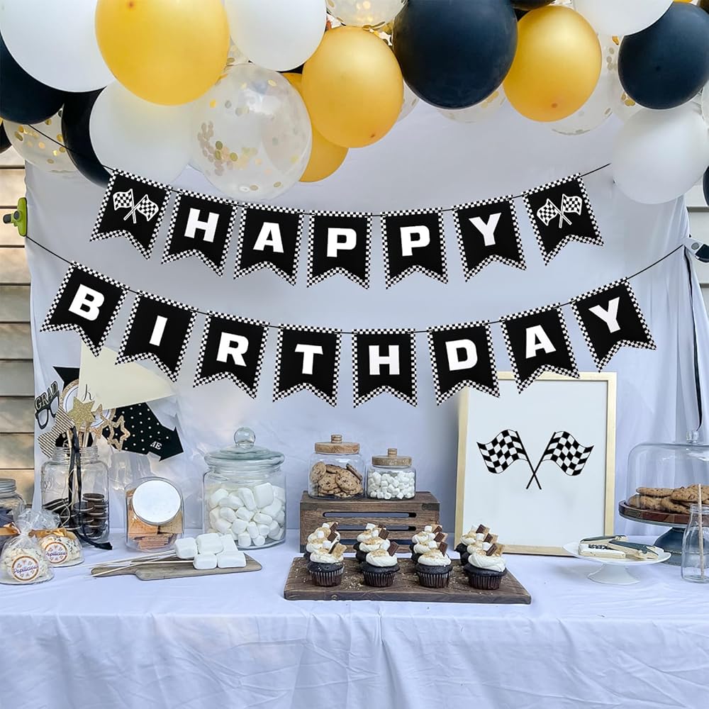 1. DIY needed: the black white racing theme happy birthday banner bunting birthday party decoration supplies need to be assembled