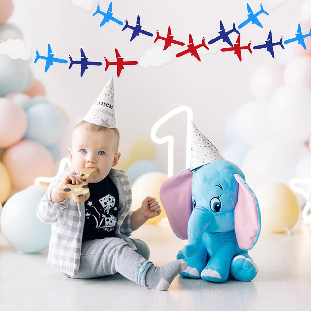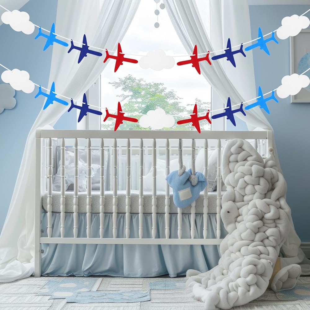 • [Package Included] You will get two packs of airplane clouds garland airplane birthday banner, each pack contains 3 clouds, 6 airplanes (3 colors: dark blue, light blue and red, 2 each), 1 pack of thread, and a needle. The quantity is sufficient, use this airplane banner to make your airplane themed party more gorgeous.
