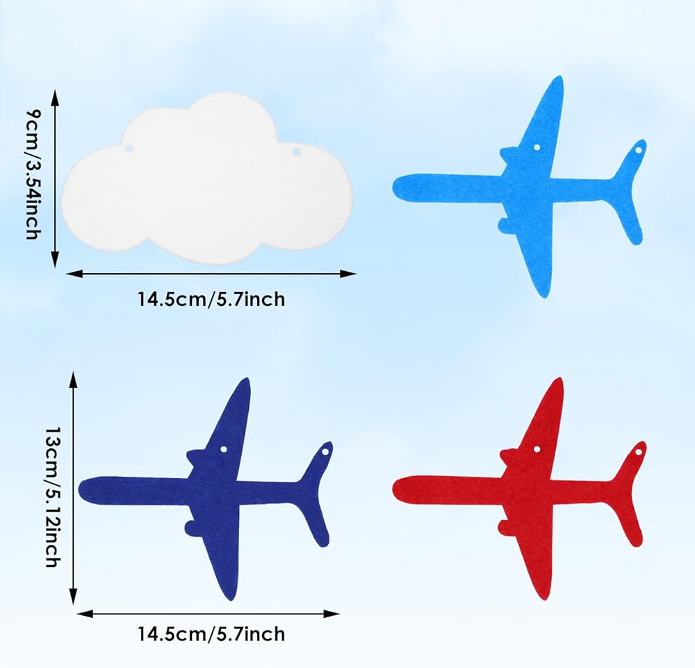 • [Suitable size] The size of our airplane decorations for party banners are suitable. The size of the airplane is 14.5*13cm/5.7*5.12inch, and the size of the cloud is 14.5*9cm/5.7*3.54inch. The exquisite outline and proportion are perfectly integrated into various theme scenes, adding infinite fun and beauty of details to the activities.