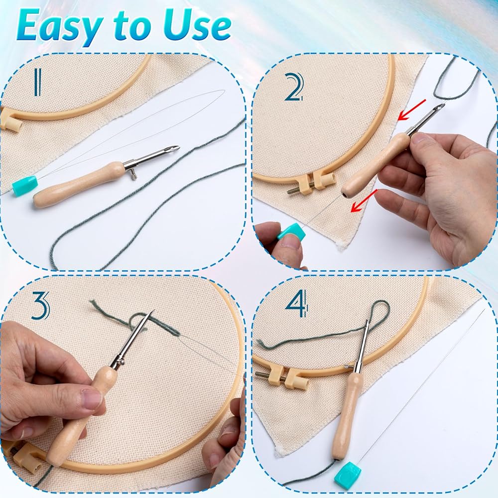 Premium Safe Quality: Made of rust-resistant metal and smooth plastic handle, the punch needle threading tools are lightweight, safe and comfortable for using