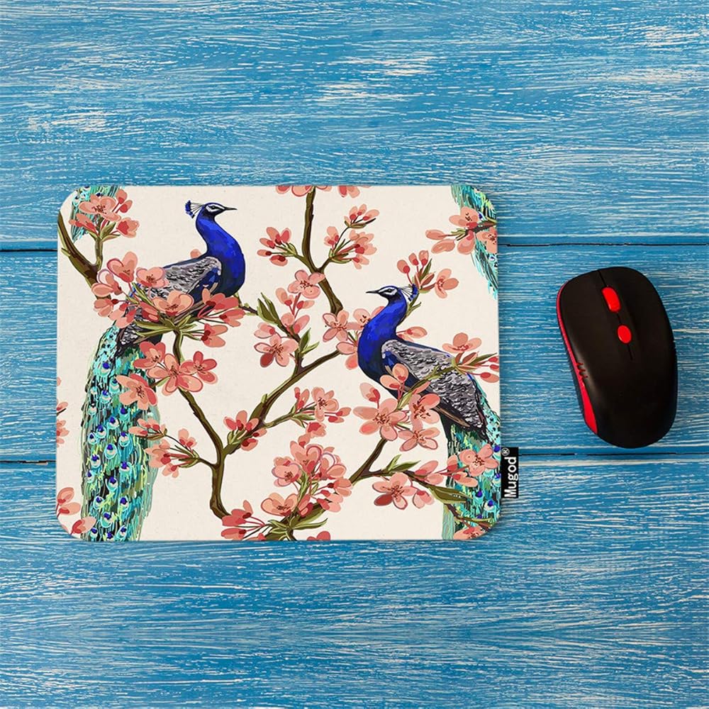 Mugod Peacock Mouse Pad Peacock على أزهار الزهور اليابانية الاستوائية فروع Decor Maming Mouse Pad Rectangle Mousepad لمقاطعات أجهزة الكمبيوتر المحمولة 7.9x9.5 بوصة