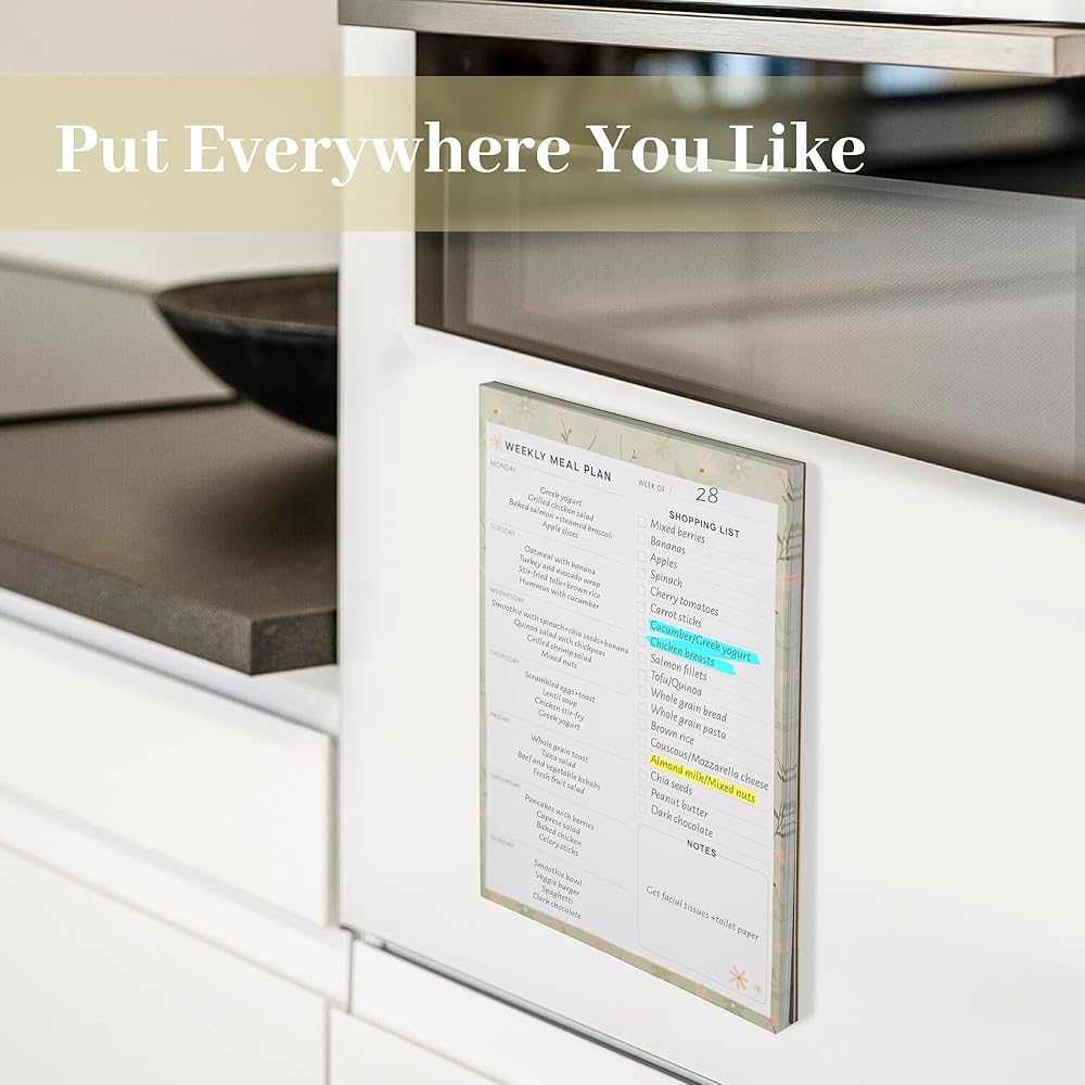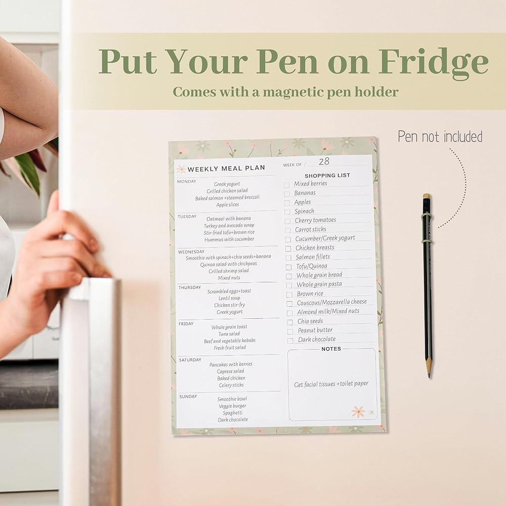 الإيجابية الإيجابية المغناطيسية المفكرة للثلاجة ومخطط الوجبات وقائمة البقالة مع حامل القلم ، والتمزيق قائمة التسوق ، والتخطيط اليومي للوجبة الإعدادية ، وهدية للأمهات ، و 60 ورقة ، و 7 "x10"