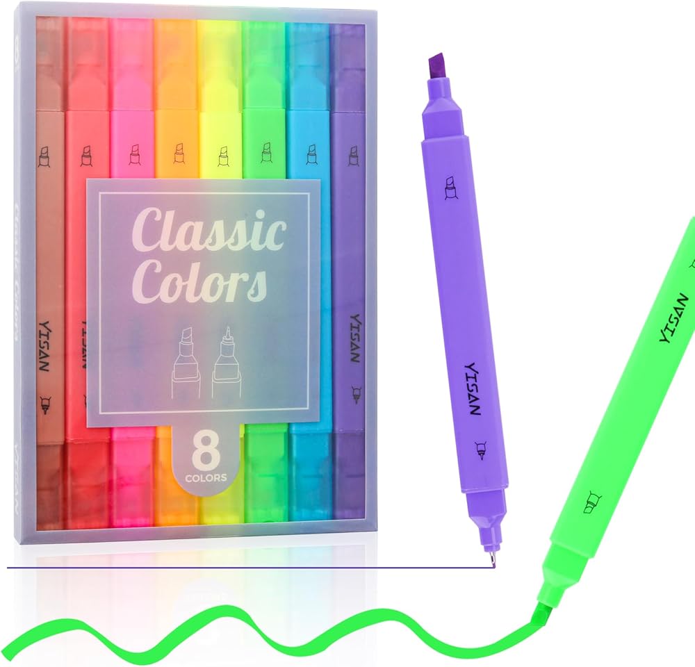 yisan Highlighters ، 8 ألوان الفلورسنت أقلام تمييز لإجراء دفتر اليومية ، والملاحظة ، والألوان المتنوعة ، 70917