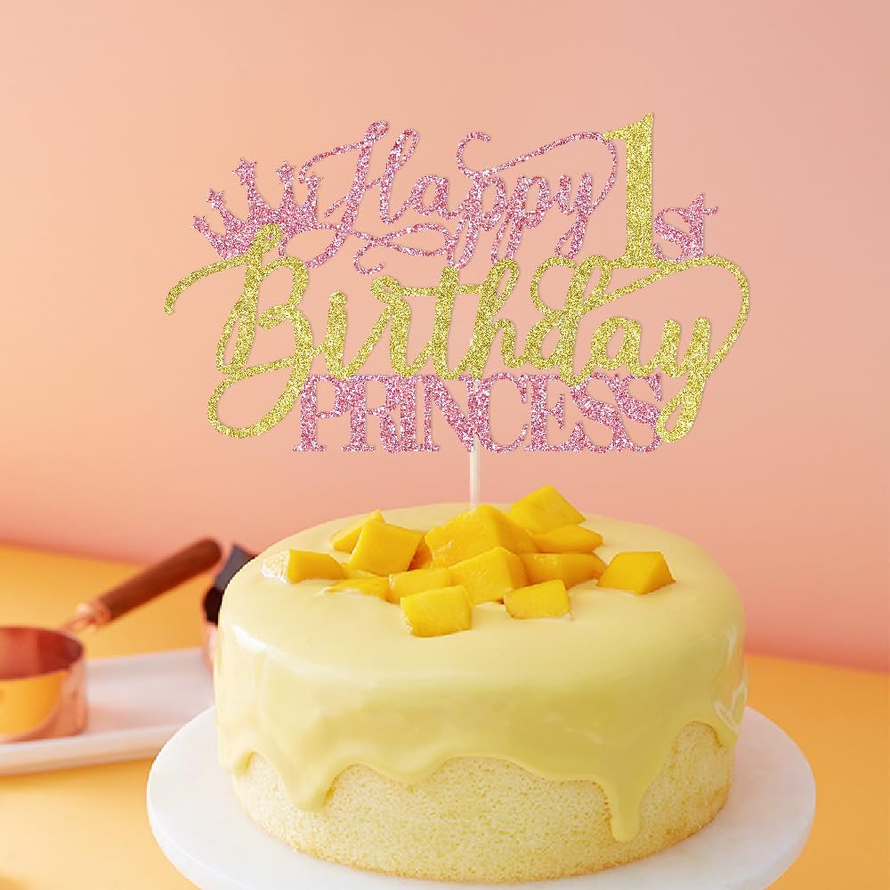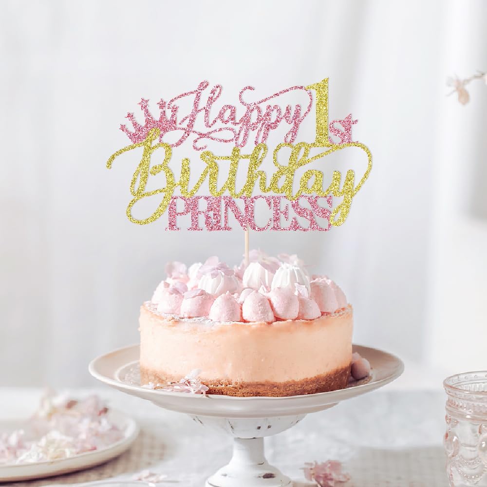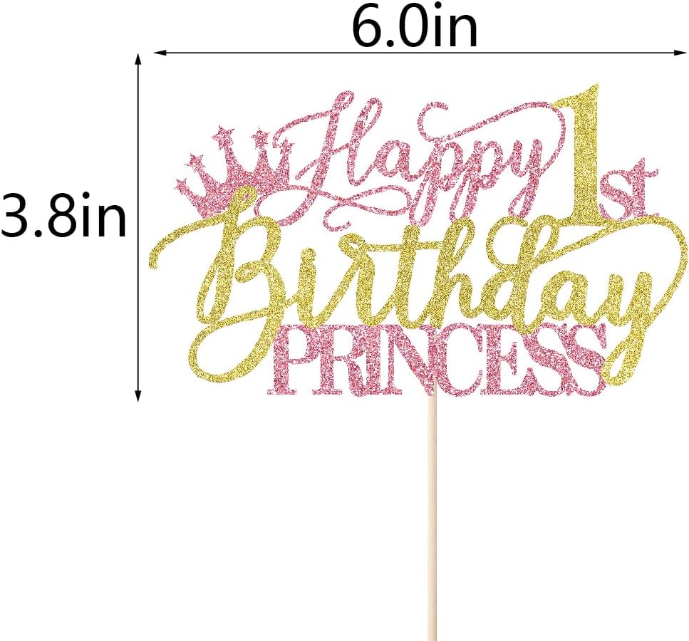 Princess 4th Birthday Cake Topper - Happy 4th Birthday Cake Supplies for Girl - Girl four Years Old Birthday Party Decorations - Pink & Gold Glitter