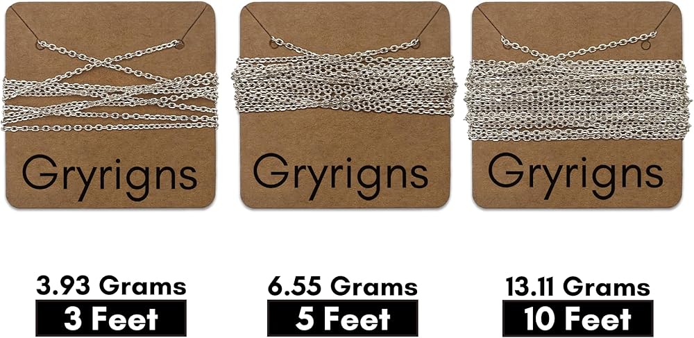 • الأبعاد: سلسلة طولها 3 أقدام (3.93 جرام) مع سماكة 1.5 مم يوفر طولًا كبيرًا لمشاريع المجوهرات المتعددة