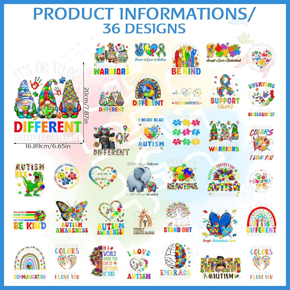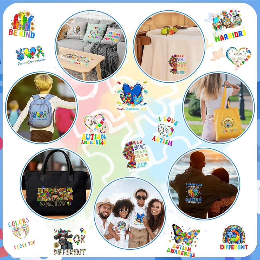 • Charming Autism Transfer Set: unleash your creativity with this set of 36 autism transfer stickers, these charming autism transfers feature a variety of elements, allowing you to create your own ideal clothing creations