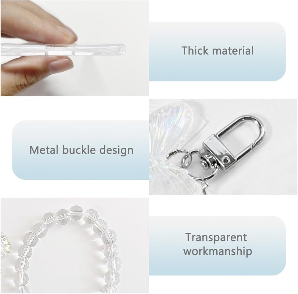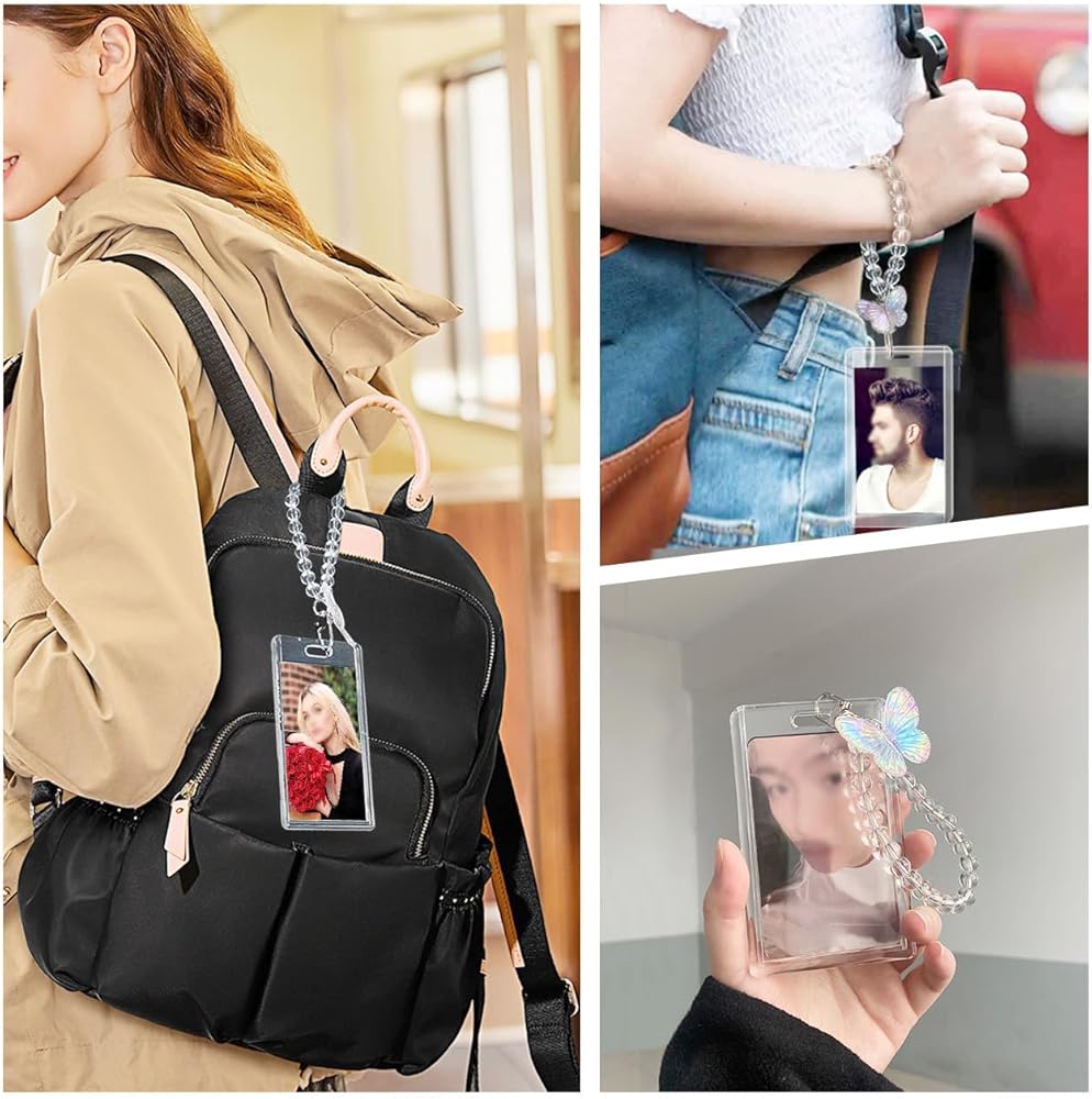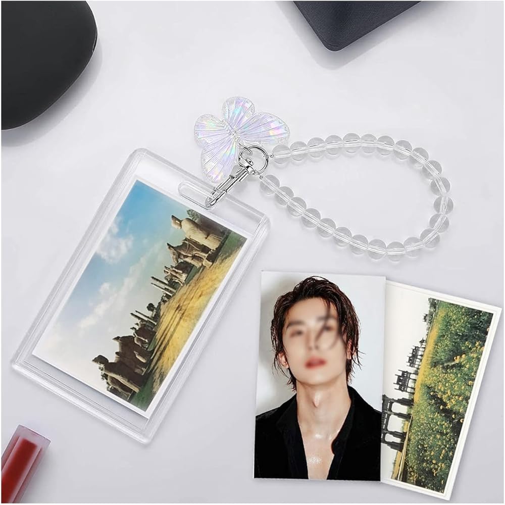 • مجموعة كاملة: يتضمن كل حامل بطاقات صور حامل بطاقات شفاف وحلية فراشة وسوار معصم مطرز. يتميز حامل البطاقات الشفاف بفتحات مصممة بذكاء في الأعلى، مما يجعل من السهل إدخال بطاقات صور كيه بوب أو صورك. يربط المشبك المعدني حامل البطاقة بسهولة بالمعصم المطرز بالخرز، مما يضمن أمان بطاقات الصور الخاصة بك مع إضافة لمسة عصرية. تضيف تعليقة الفراشة المصنوعة من الأكريليك لمسة مبهجة وغريبة إلى حامل بطاقات الصور الخاص بك، مما يجعلها إكسسوارًا مميزًا بين المعجبين