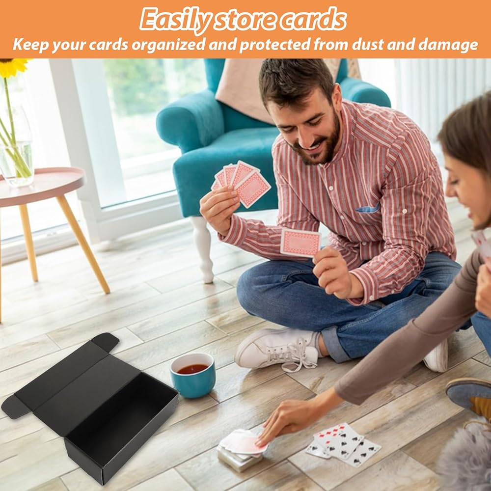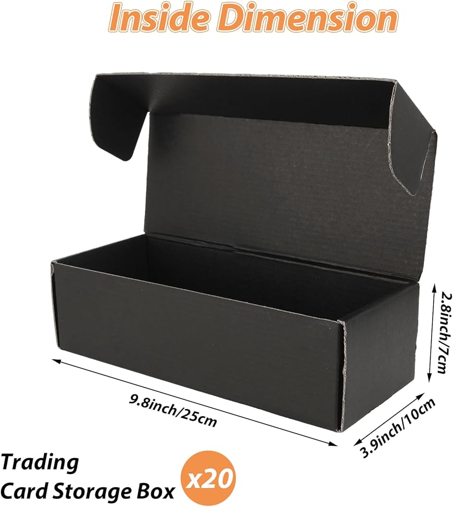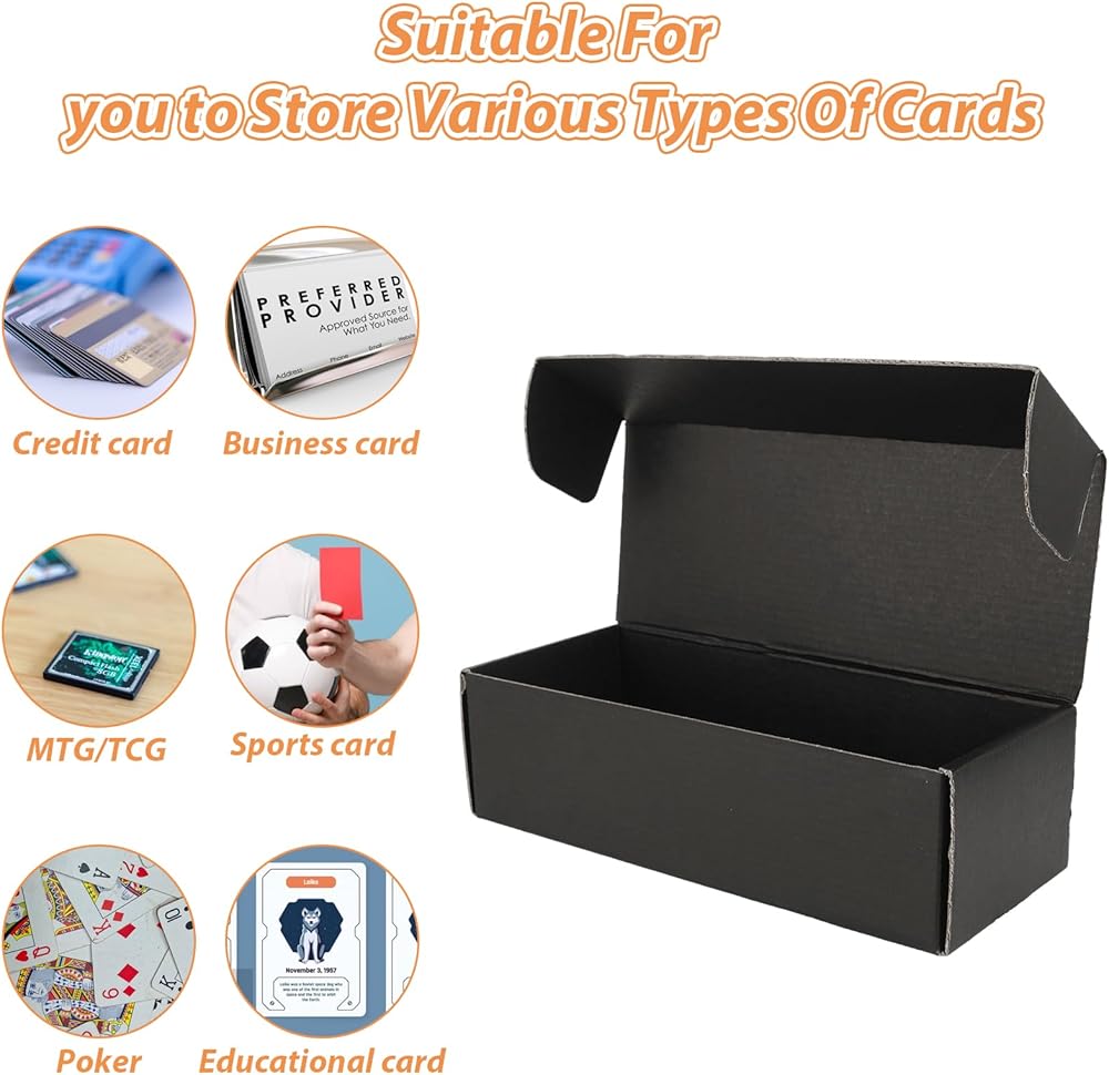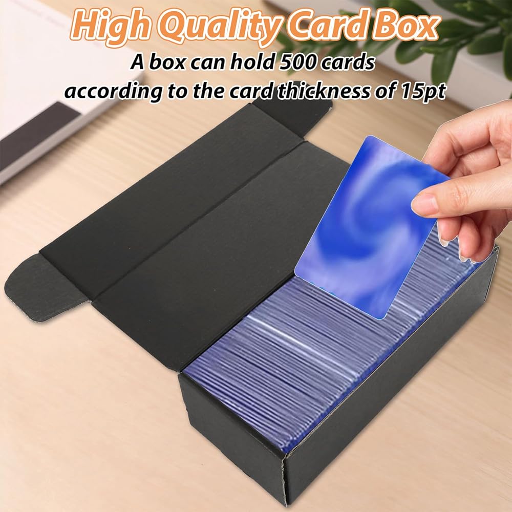 LOPYXBR trading card storage box black is made of 3-layer corrugated cardboard with greater crush resistance and a thin profile to save storage space, great for storage and shipping most kinds of cards