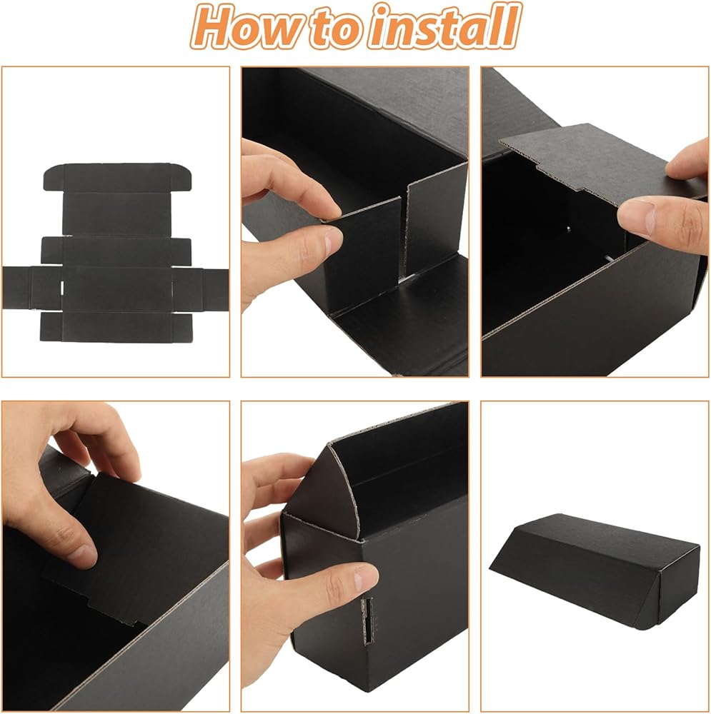 No cutting or tape is needed to put them together, black sports card storage boxes arrive flat and you just fold them into their box shape, it only takes you a few seconds