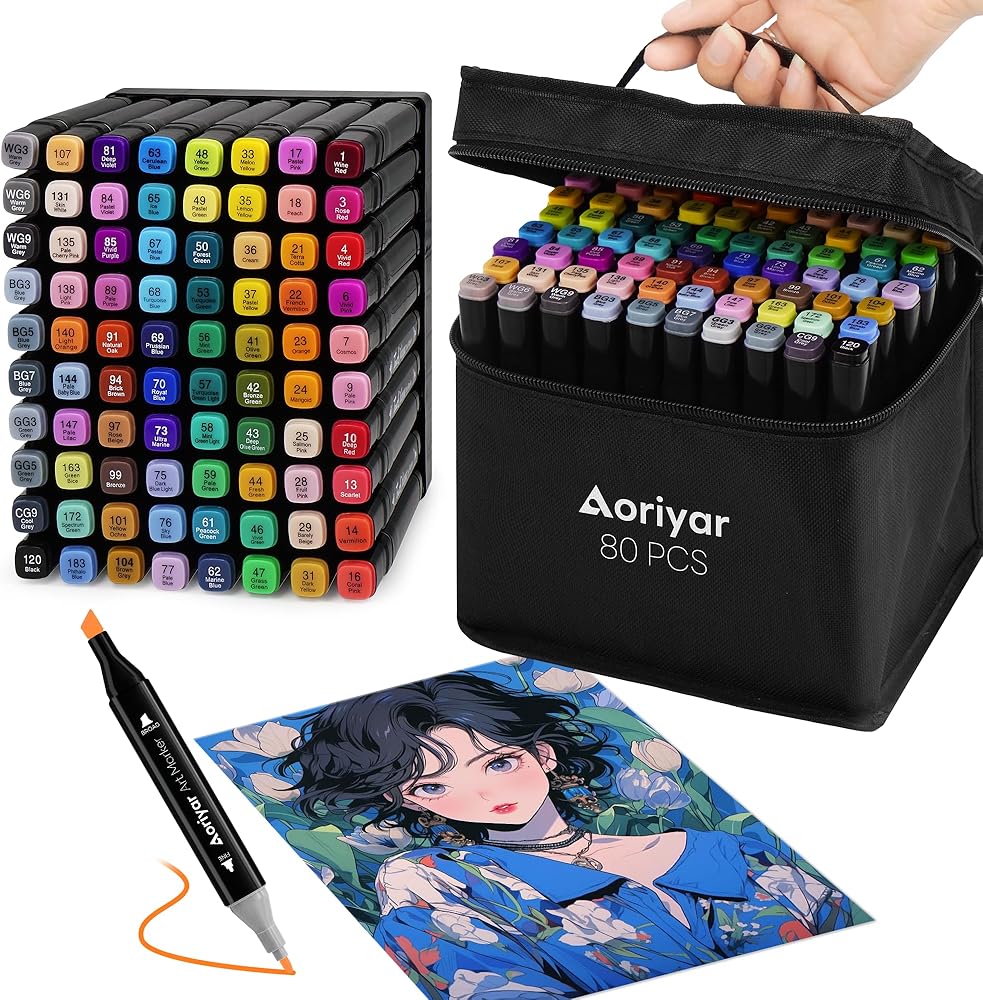 80-color dual-nib alcohol markers, opening a new realm of artistic creationAre you looking for a set of painting tools that can perfectly present your creativity? Our 80-color dual-nib alcohol markers are born to meet your artistic pursuits. It will immerse you in a colorful world and enjoy the joy of turning creativity into reality.Colorful and inspiringWith 80 carefully blended colors, from fresh and soft elegant tones to rich and bright bright colors, everything is available. Whether it is depicting the dew on the petals in the morning or outlining the bright starry sky under the night sky, this set of markers can provide just the right color. Alcohol-based ink has excellent light resistance and high light resistance. The paintings are not easy to fade even if exposed to light for a long time; the strong covering power can easily cover the underlying color, and the outstanding color mixing ability allows you to easily create a natural transition and rich color effect, which meets the needs of various types of painting creation such as illustrations, designs, and handbooks, and provides endless color inspiration for your every creation.1.Dual-head design water based markers : tips thin head and wide head to meet different needs. Smooth writing.2. Suitable for children, students, teachers,artists, masters, training institutions.3. Specialized in art drawing and various designs, cartoons, fashion, architecture, products, gardens, pop advertising, interior design, etc.4. They are perfect gifts for birthdays, International Children's Day, Halloween, Thanksgiving, New Year and Christmas. Great for children, boys, girls, students, adults, great for design, sketching, comics, markers, graphics, homework, bills, calendars, illustrations, paintings, decoration, complex designs, etc. High-quality, waterproof artist-grade ink, your colors will blend naturally without changing.Universal colors meet all your drawing needs.Great for art drawing and various designs, cartoons, fashion, architecture, products, gardens, pop music, interior design, etc.This set of 80 color double-tip alcohol markers is a capable partner for art lovers and a bridge for creative realization. Choose it and let each of your works become a unique masterpiece of art, allowing you to roam freely in the world of art!
