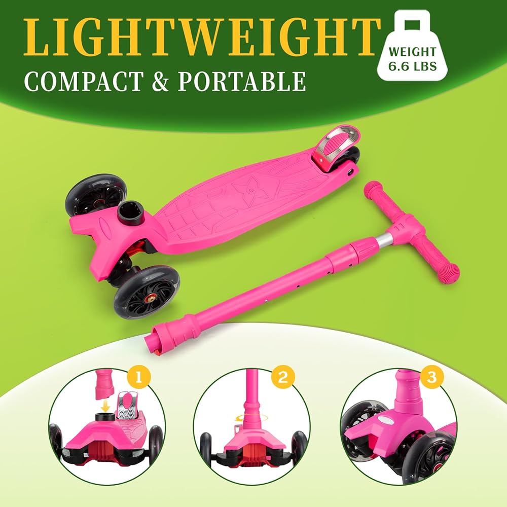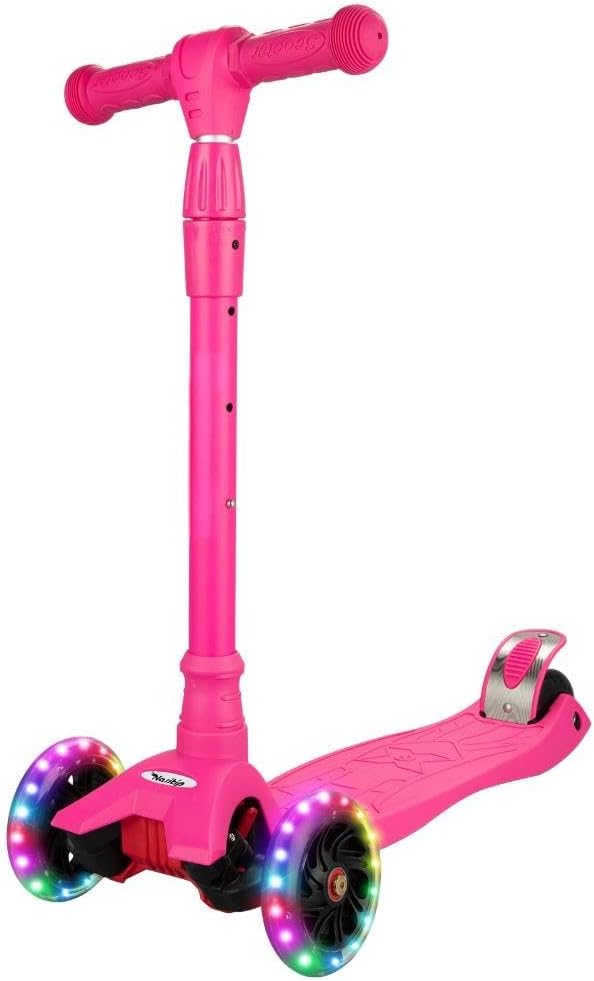 - عجلات واضحة مثيرة: تتميز العجلات الثلاث لهذا سكوتر الأطفال الصغار بأضواء LED مبهرة تخلق تألقًا آسرًا ، ومتسابقين ساحرين ، وضمان الرؤية في الإضاءة المنخفضة ، وتزويد الآباء براحة البال الإضافية في العقل