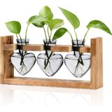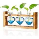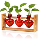 NACOME PLANT TERRARIUM لديكور المكتب: هدايا عيد ميلاد يوم الأم لعشاق النباتات أمي أمي زوجة - موقف خشبي منضدة زارع 3 لمسة زجاجية مزهرية على شكل HEART HOME HOME