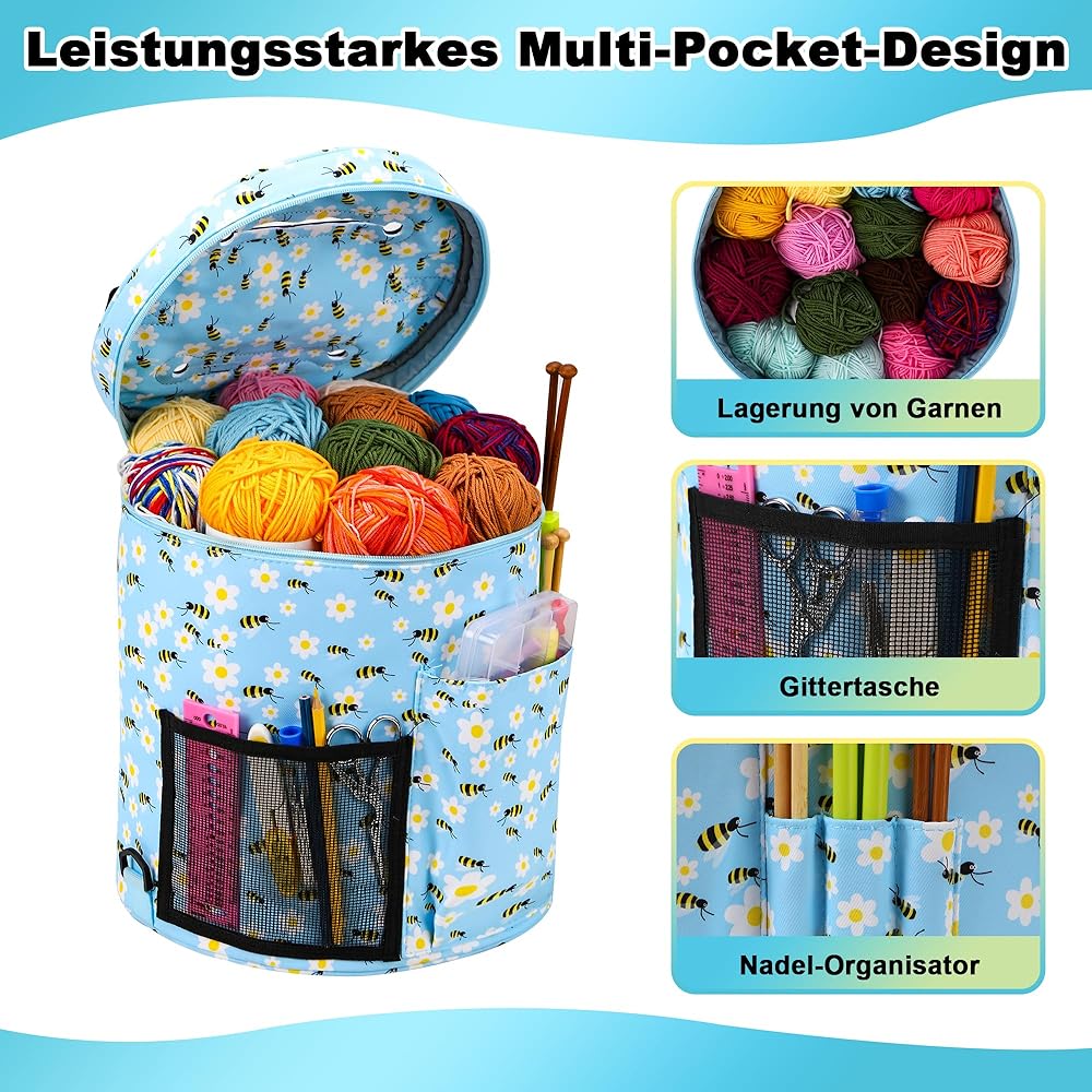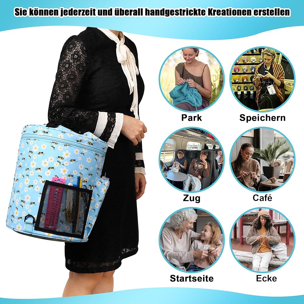 من السهل حملها. تصميم الوزن والموسيقى المحمولة. من السهل حمل حالة حمل الحياكة مع المقبض وحزام شولر إزالة. استمتع بحرية وراحة أخذ مشاريع الحياكة معك.