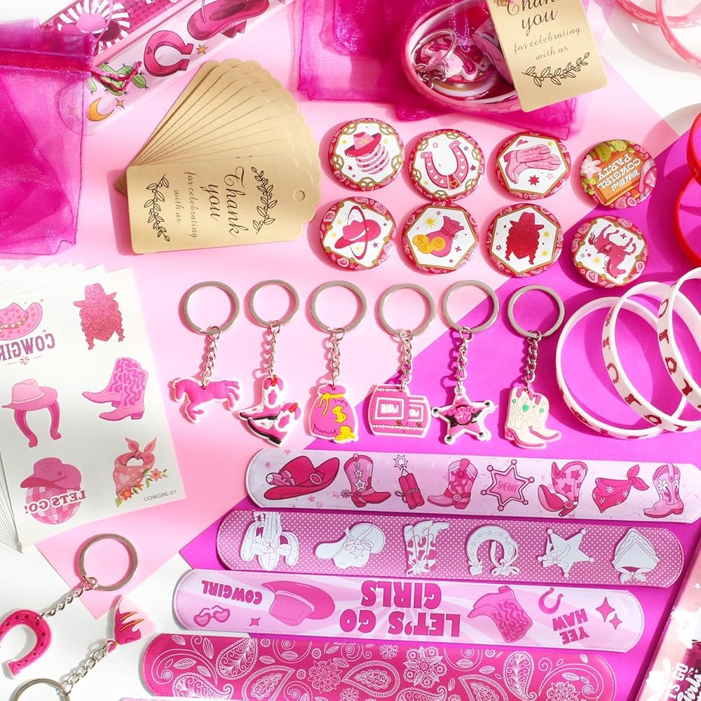 🎁 مثالي للحفلات التي تحمل عنوان رعاة البقر والمزيد-نجاح لحفلات عيد ميلاد راعي البقر ، حزب "روديو الأول" ، الاحتفالات ذات الطابع الغربي ، تفضل الحفلات الوردية أو تفضل حفلات الفتاة ، مكافآت الفصول الدراسية. سيحب الأطفال جمع وتداول وارتداء ملحقاتهم المفضلة!