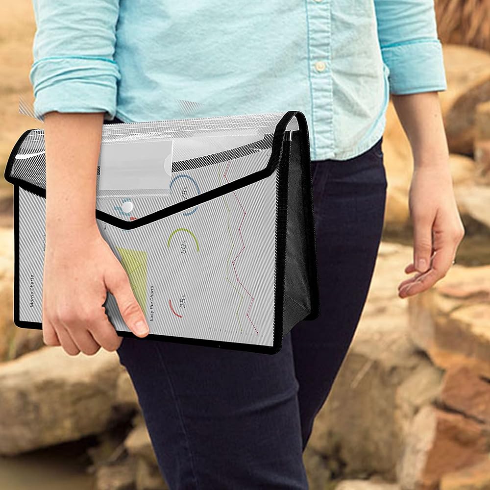 Large Capacity: The plastic file folder is 13 x 9.8 inch, large than A4 letter size,expandable to 3 inch,can store about 800 pages large capacity. Easy to carry documents for offices,homes and school.