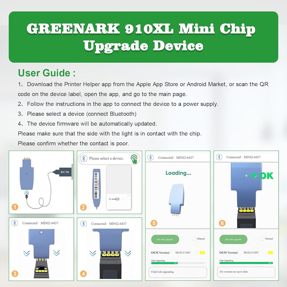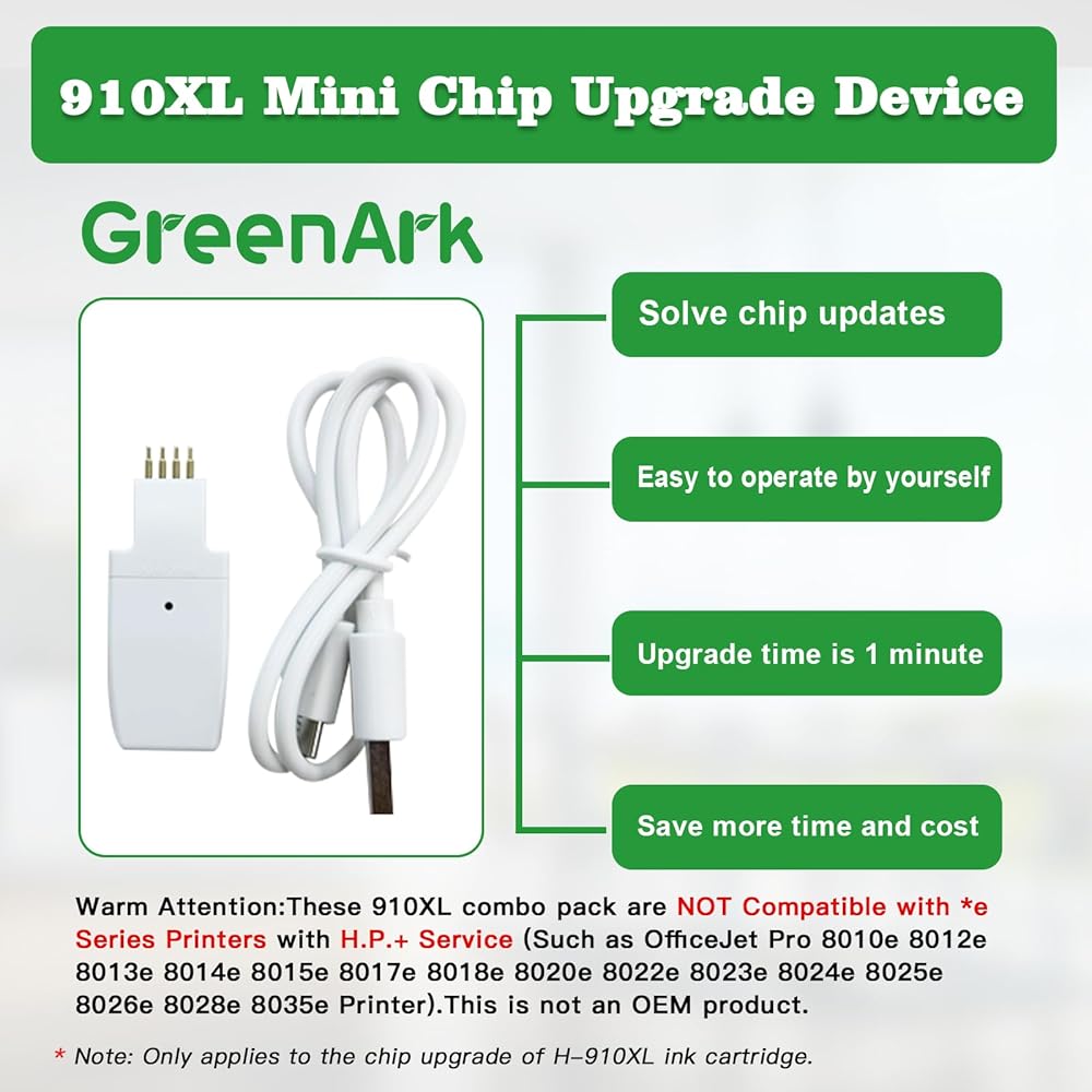 Item: Greenark Compatible 910xl ink cartridges combo pack with 1pcs 910XL mini chip upgrade device