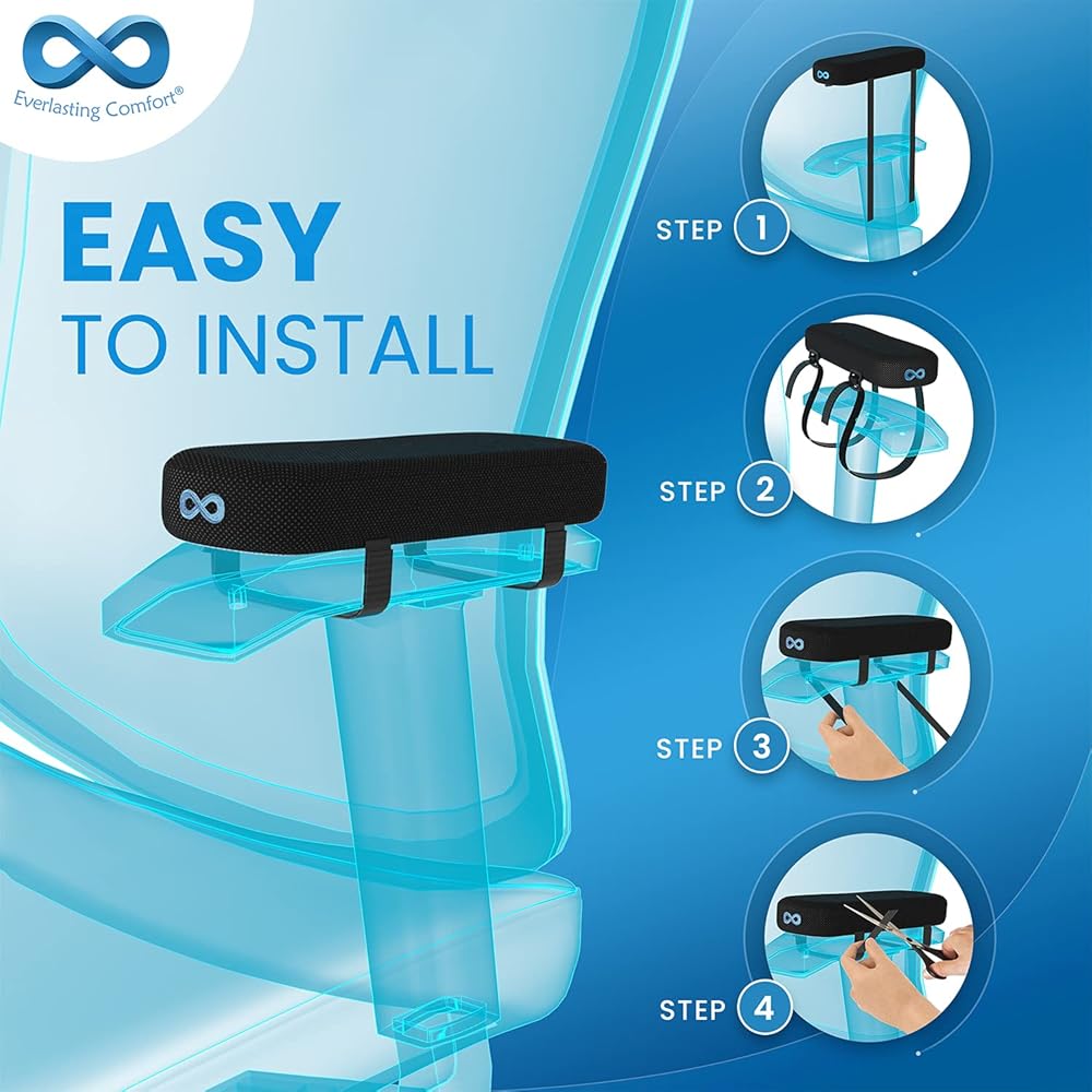 Discover the ultimate comfort combination with our Lumbar Support Pillow and Office Chair Arm Covers by Everlasting Comfort. Achieve optimal back support and comfort with our ergonomically designed Lumbar Support Pillow, featuring heat-responsive memory foam that adapts to your spine's natural curves. Reduce back tension and improve your posture during road trips, work sessions, or leisure time. Paired with our premium Office Chair Arm Covers, crafted from 100 percent pure memory foam with a cooling gel pad, you'll experience enhanced support for your elbows and forearms. The breathable mesh covers and easy setup make this bundle ideal for any chair, providing comfort and versatility wherever you go.