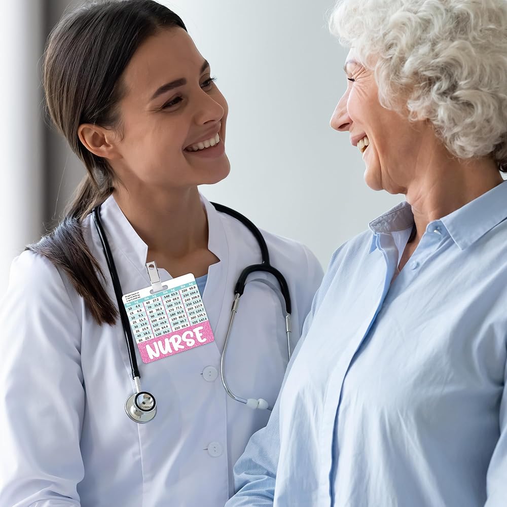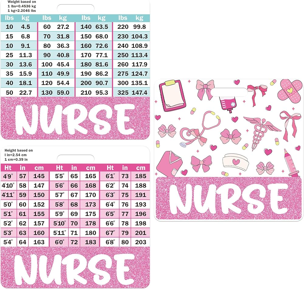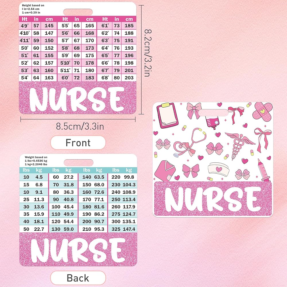 مريحة وعملية: مخطط تحويل الطول والوزن على أحد رفاق الشارة يجعلها أداة عملية للرجوع إليها بسرعة ، وخاصة للممرضات والمساعدين الطبيين وغيرهم من عمال الرعاية الصحية