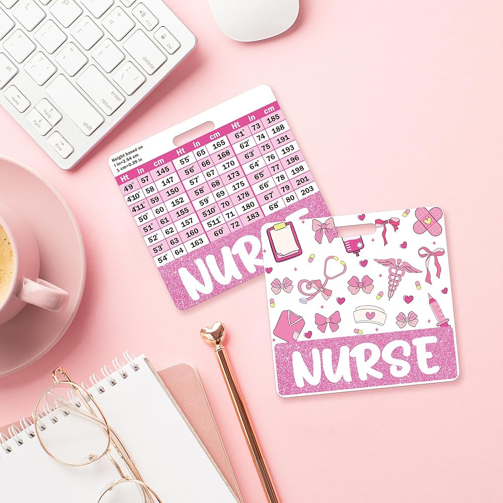تصميمان فريدان: تتضمن هذه المجموعة اثنين من الأصدقاء الشارة - أحدهما يضم تصميمًا لطيفًا للقوس الوردي ، والآخر مع مخطط عملي للرقم والوزن ، مثالي لمحترفي الرعاية الصحية والطلاب