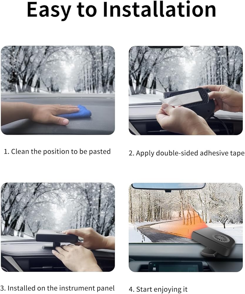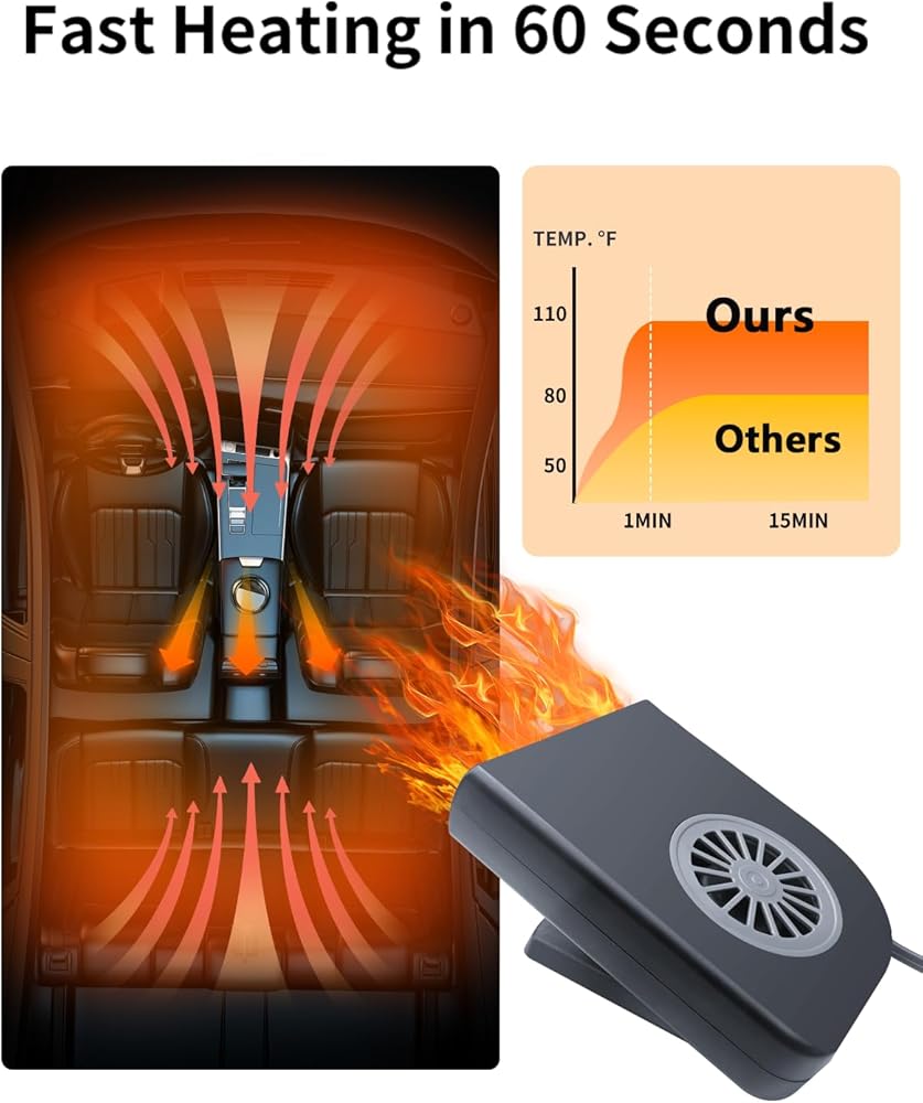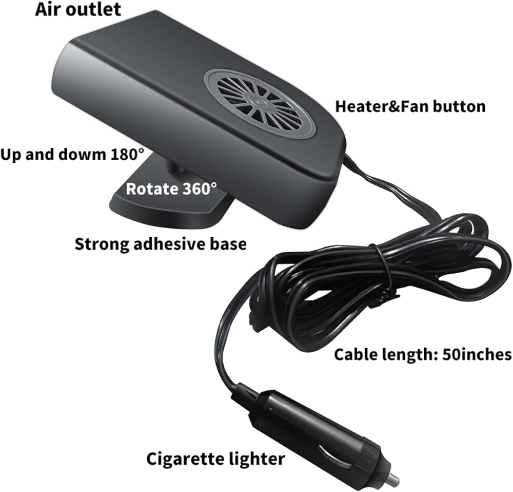 360 درجة قابلة للتدوير: يمكن تدوير قاعدة سخان السيارة لأعلى ولأسفل بحوالي 80 درجة ، اليسار واليمين بمقدار 360 درجة. أحضر الدفء في أي اتجاه تريده