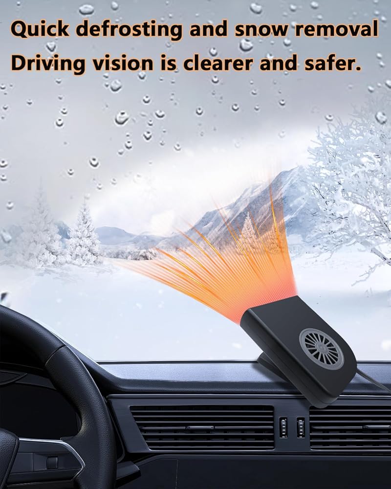 سخان السيارات المحمولة و deferoster: عندما يكون زجاج النافذة ضبابًا كبيرًا ، امسك سخان السيارة هذا لتفجير الضباب ، ثم بقعة لإزالة الضباب. (يمكن فصل القاعدة)