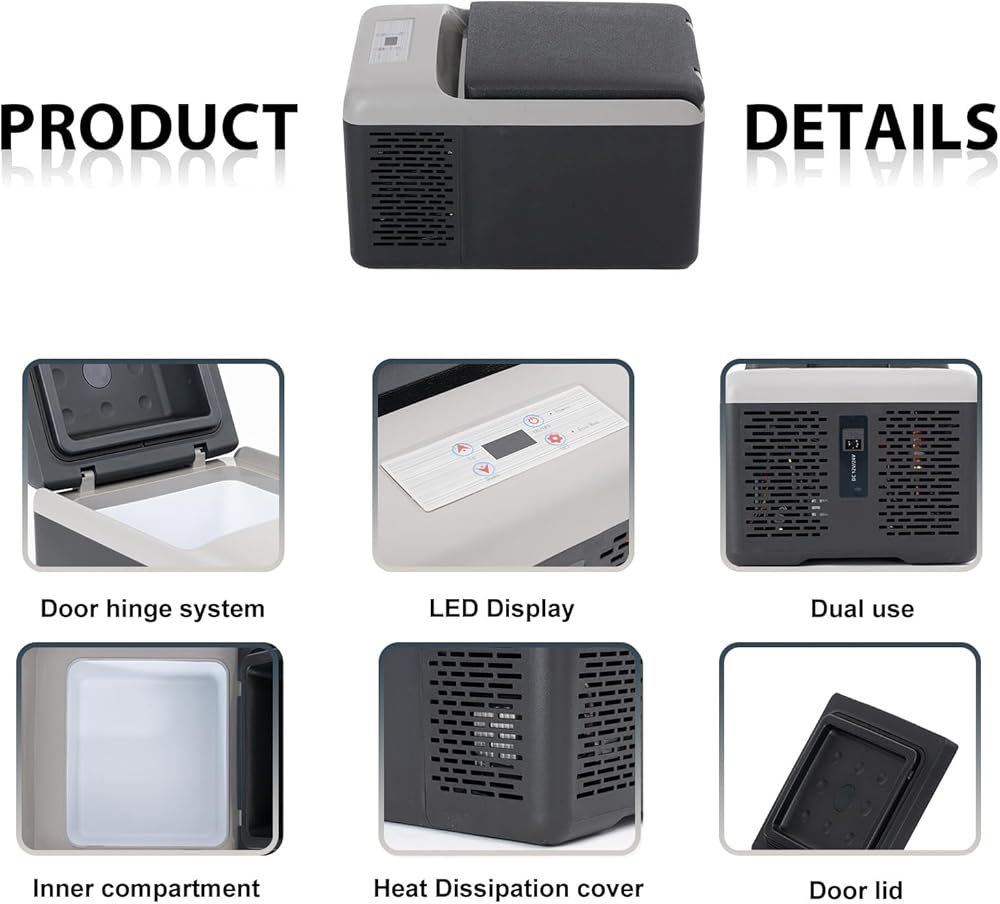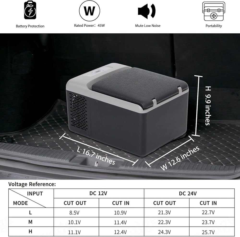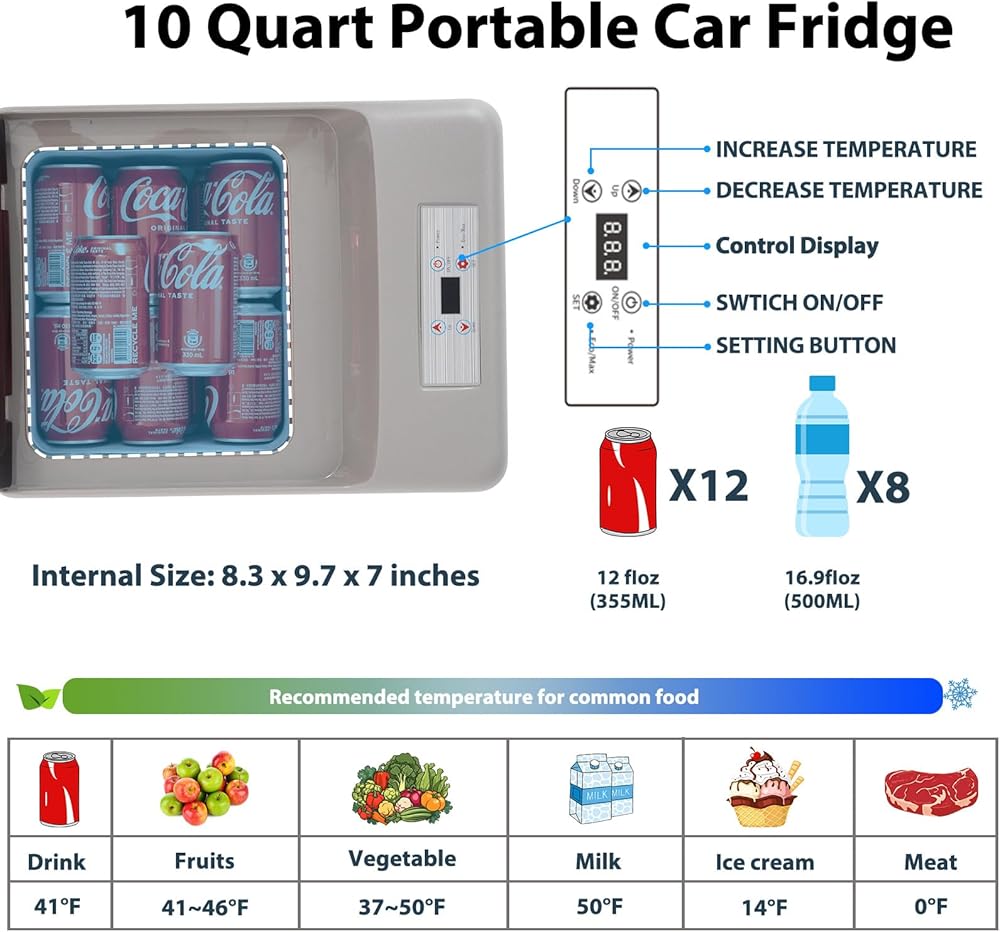 10 سعة الكوارت: يمكن للتجميد المحمول أن يناسب 8 زجاجات من مياه 18 أوقية أو 12 علبة من 12 أوقية كولا. البعد الخارجي هو 16.75*12.56*9.88 بوصة.