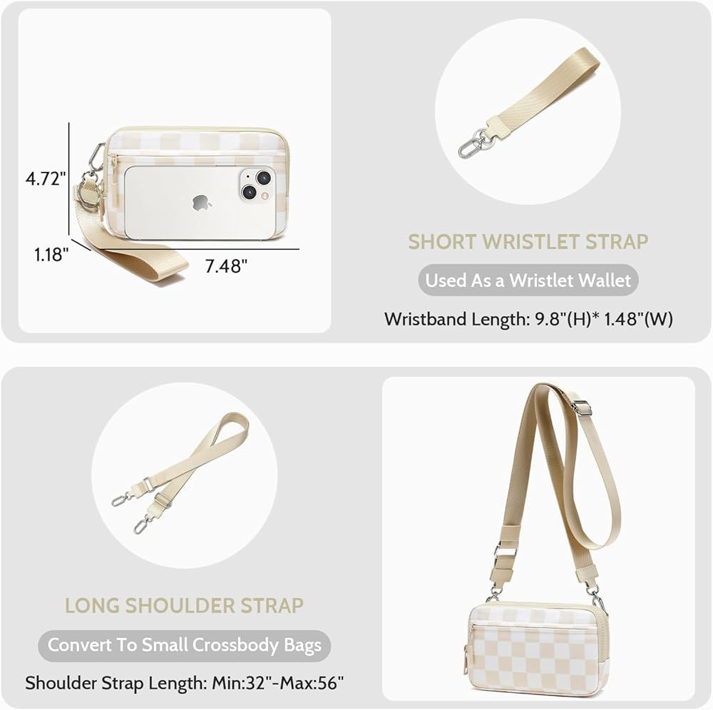 "التصميم القابل للتحويل ثلاثي الاتجاهات ومضادة للسرقة دون جهد بين أوضاع حقيبة المعصم/القابض/الكتف مع الأشرطة القابلة للفصل. فتحات بطاقات بطاقة RFID المدمجة من بطاقات الائتمان الرقمية ، مثالية للمناطق المزدحمة مثل الأسواق الليلية أو الحفلات الموسيقية"
