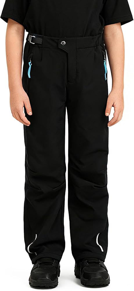 مقاومة للماء: هذه السراويل المشي لمسافات طويلة لها طبقة خارجية مع قذيفة ناعمة ، ولها وظيفة مقاومة للماء ممتازة ومجهزة بشروط عاكسة لتعزيز سلامة الأطفال عندما يخرجون للعب