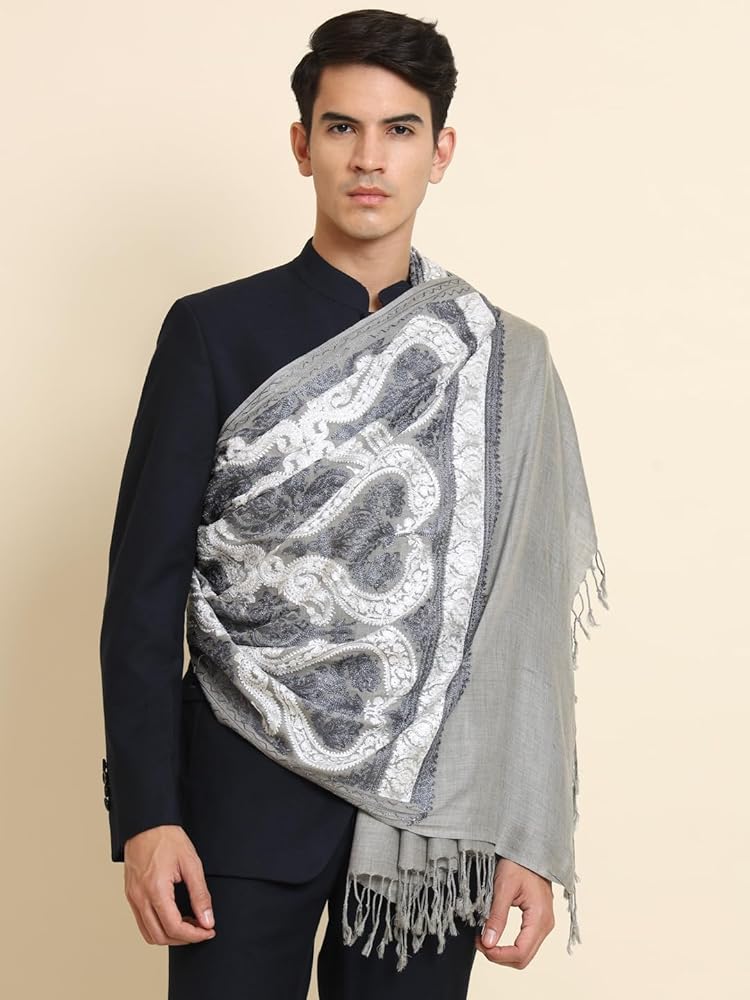سرق Zamour المطرز للرجال ، وأنماط التطريز الحريري Nalki ، والمواد الصوفية الجميلة ، وشال الشكل العرقي