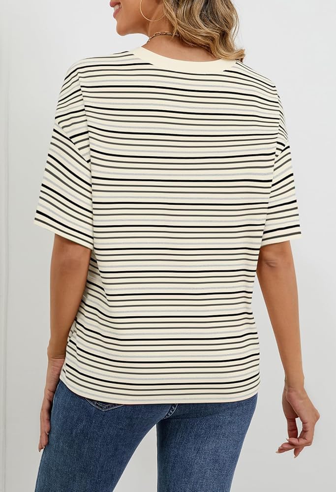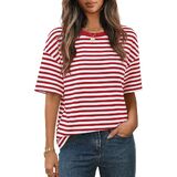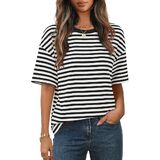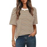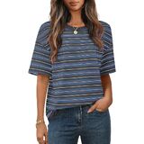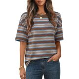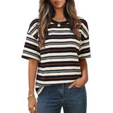 الميزات: تصميم شريط الألوان ، غلاف قصير ، رقبة الطاقم ، خط العنق المضلع ، ملاءمة فضفاضة ، قميص أزياء غير رسمي ، تي شيرت أساسية ، طراز لطيف ، قمم الصيف للنساء 2025 العصرية