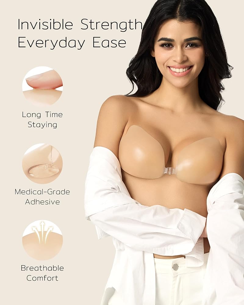 خفيفة الوزن ومريحة: حمالة الصدر اللزجة غير المرئية هي خفيفة في الوزن ، وترفع الصدر ، ولا تتراجع ، وأزرار حمالة الصدر شفافة ، وليست معدنية ، ولا تسبب مشاكل في الجلد. لا إسفنجة ، تعطيك الراحة الفائقة. الأسلوب من المألوف للغاية ومناسب لجميع أنواع فساتين V العميقة.
