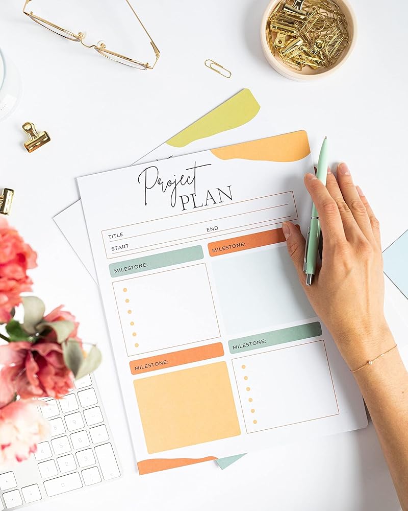 يسمح لك التصميم ذو الوجهين بالحفاظ على كتابتك بالداخل وخصوصية أو إبقائها بالخارج. يحتوي كل مجلد على مساحة كبيرة للكتابة، ويضم "قائمة المهام" على الجانب الخلفي و"معالم المشروع" على الجانب الأمامي من المجلد على عكس المجلدات الأخرى بحجم الحروف، أو مجلدات الملفات المبطنة، أو مجلد الملفات الملونة. اختر ما يناسب احتياجاتك بشكل أفضل!