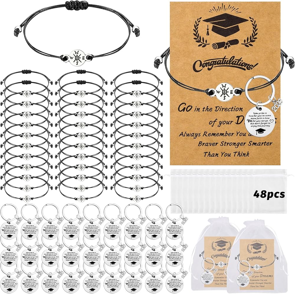• هدايا التخرج مجموعة كبيرة: تشمل الهدية 24 أساور بوصلة ، و 24 سلاسل مفاتيح التخرج ، و 24 بطاقة رسائل ، و 24 أكياسًا من أورجانيزا هذا هو سوار كبير في المدرسة الثانوية في كلية 2025 يصنع فكرة هدية تخرج رائعة
