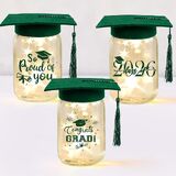 بناء زجاجي عالي الجودة: مصنوع من الزجاج السميك والقوي ، تم تصميم هذه الجرار المتوهجة للمساعد المركزية للاستخدام على المدى الطويل القابل لإعادة الاستخدام. تضيف قبعات التخرج الأسود لمسة أصيلة ، مما يجعلها تذكارًا دائمًا من نجاح الخريجين والعمل الجاد