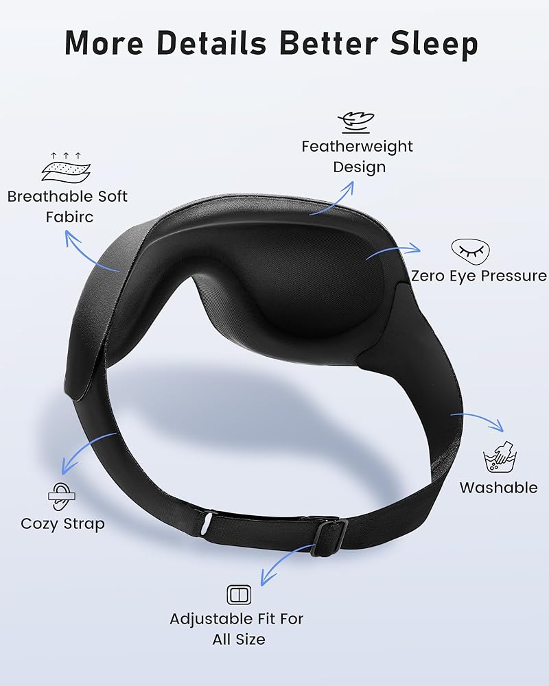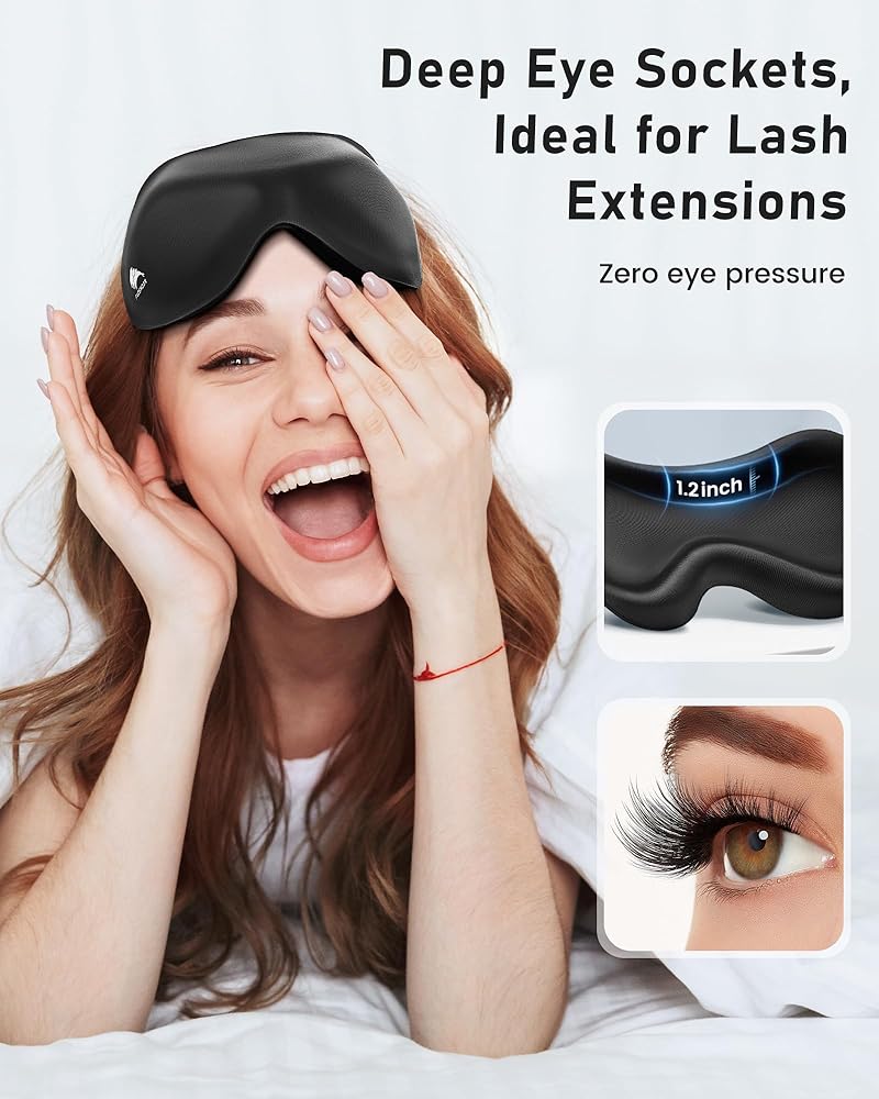 قناع العين نوم تعتيم خفيفة الوزن: نوم جانبي ثلاثي الأبعاد محيط لتمديدات الرموش - صفر ضغط العين حزام قابل للتعديل - نساء طائرة سفر اليوغا نوبة ليلية 3 أجزاء