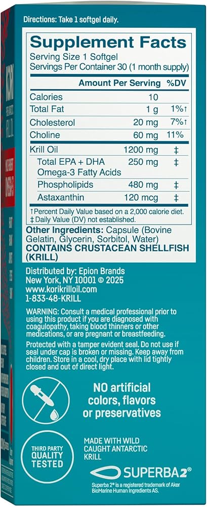 ملحق أوميغا-3 من المقاطع المتعددة: توفر ناعمة زيت Krill في أنتاركتيكا أوميغا 3 مع أستازانثين مضادات الأكسدة ، وتركيز عالي الفسفوليبيد ، كما يوفر 250 ملغ من EPA و DHA Omega-3 لصحة القلب ، ودعم المناعة ، وصحة الدماغ ، وصحة الجلد.
