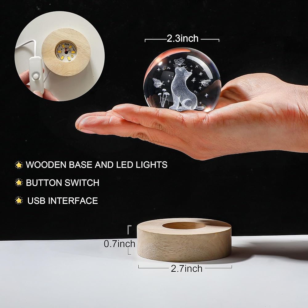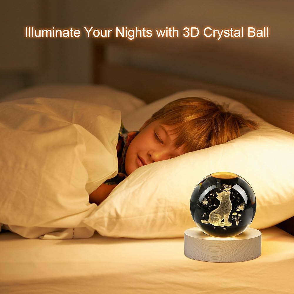 تضيء مساحتك مع الضوء الأبيض الدافئ الذي توفره قاعدة مضيئة للكرة البلورية القطة المنحوتة ثلاثية الأبعاد ، ونمط القطط والفراشات يجعلك تسترخي