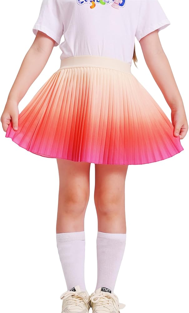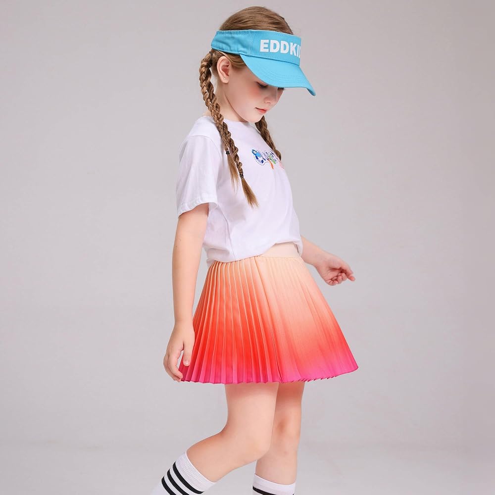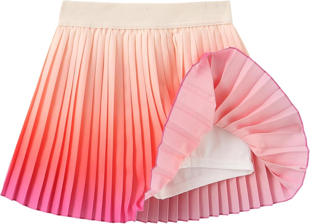 الفتيات التدرج الطباعة skorts مع شورتات مدمجة | تنورة متزلجة قابلة للتعديل عالية الخصر للمدرسة واللعب | سن 5-12 سنة