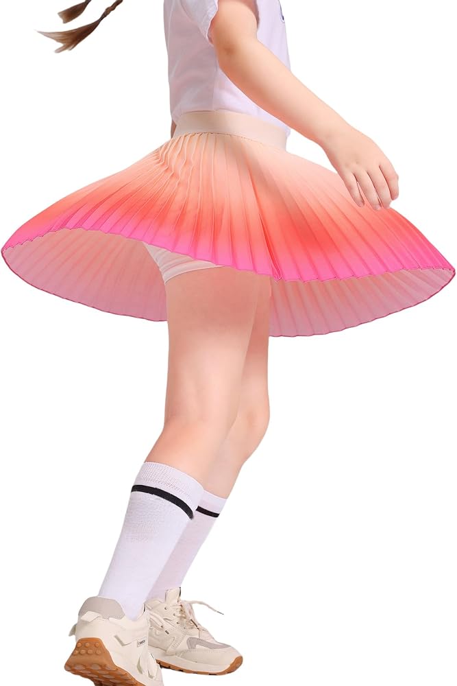 • التصميم المذهل للطباعة والتصميم المطوي : تقنية طباعة Ombré المائية تخلق أنماطًا نابضة بالحياة المقاومة للتهوية ، والتي تعززها 32 طيات دقيقة للحركة الديناميكية. مثالي لالتقاط الصور المدرسية ، وممارسة التنس ، أو النزهات غير الرسمية.