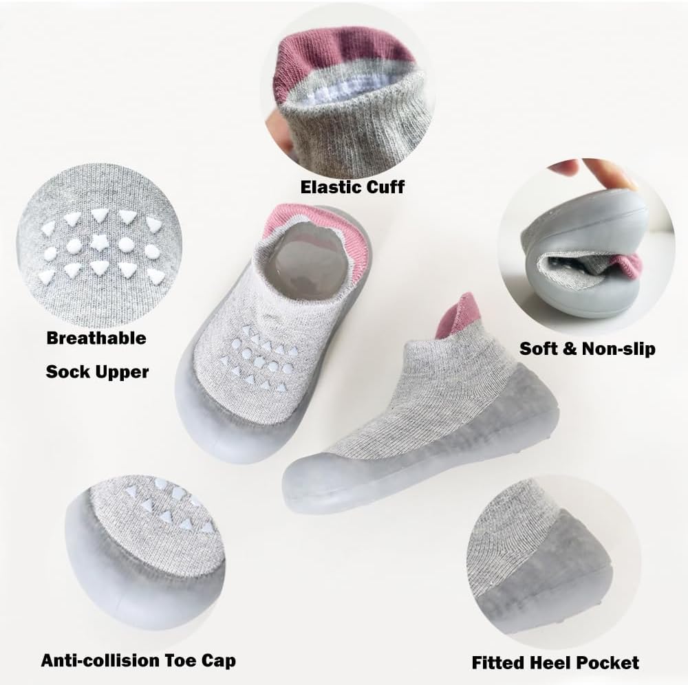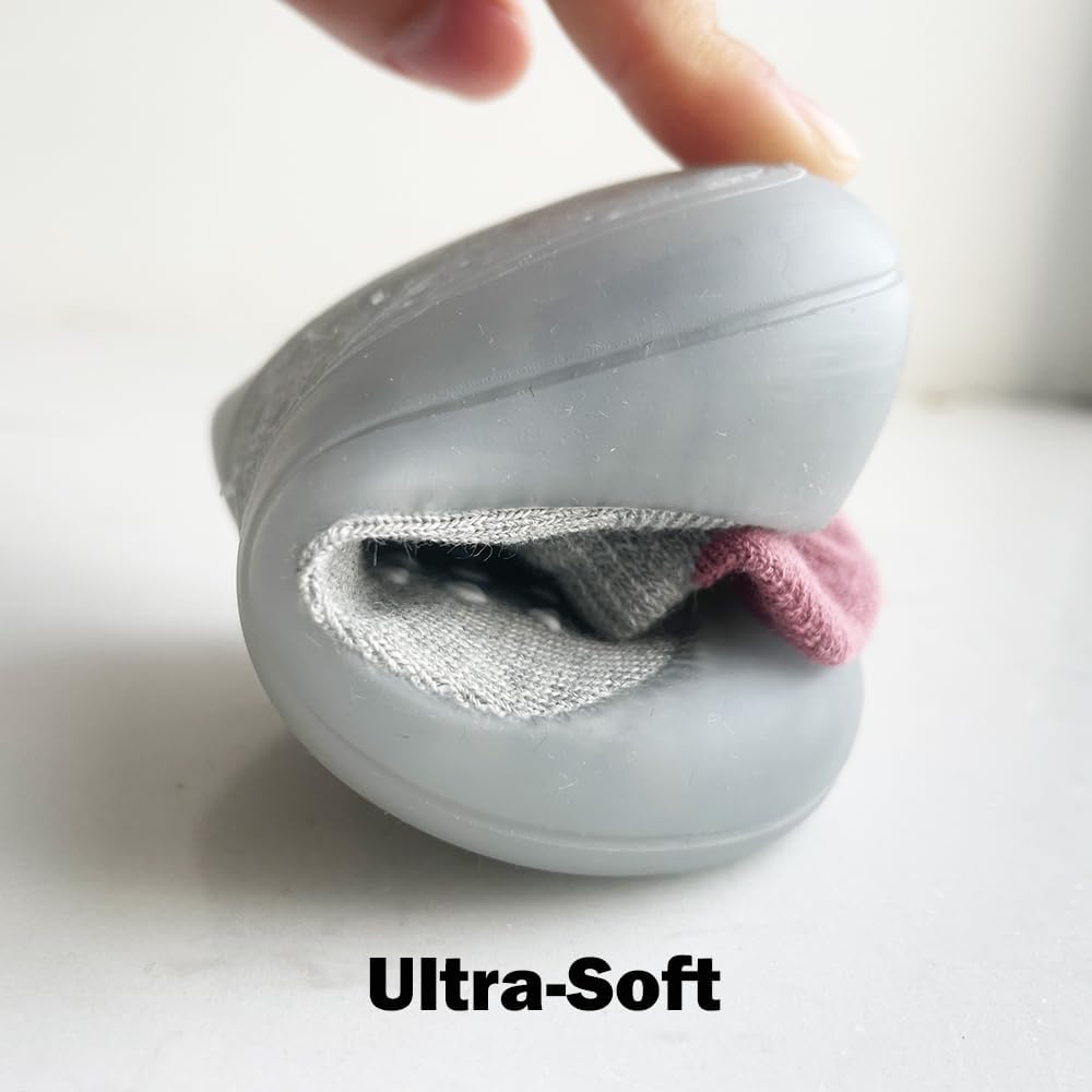 المواد الممتازة: أحذية جورب خفيفة الوزن وصديقة للبشرة وذات تنفس ، يمكن أن تمتص المواد العلوية الجيدة بشكل فعال العرق والحفاظ على أقدام الطفل جافة ومريحة. يوفر السيليكون البارز على إصبع النعال مساحة أكبر وأكثر راحة لأصابع الأطفال.